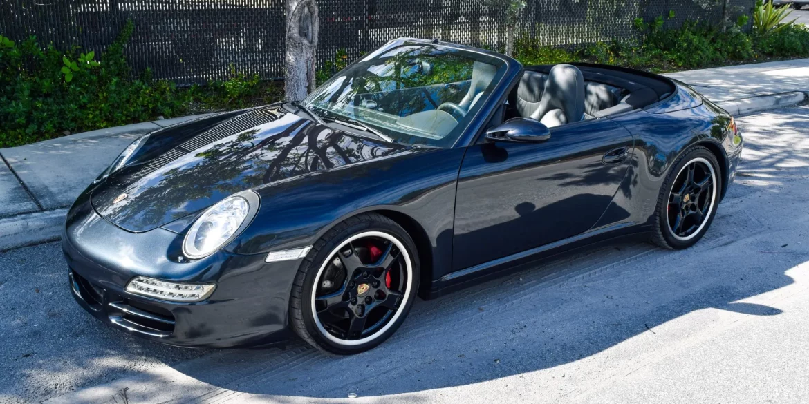 This 2009 Porsche 911 Carrera S cabriolet spent time in Texas, California, and Nevada before being acquired by the selling dealer in 2025. Power is provided by a 3.8-liter flat-six paired with a six-speed manual transaxle, and it is finished in Black over Black leather. Equipment includes a black soft...