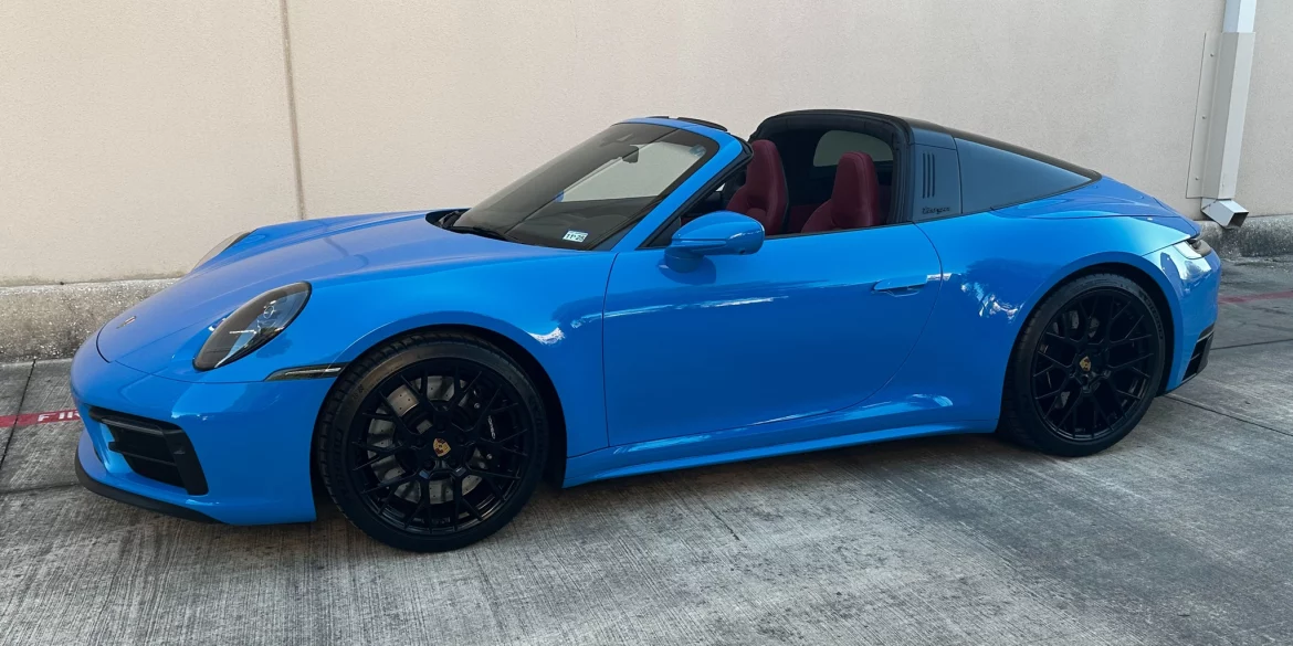 Featuring a 7-speed manual transmission paired with its twin-turbocharged 3.0-liter flat-six engine, this 2023 Porsche 992 Targa 4 GTS is presented in the striking combination of Shark Blue over a Bordeaux Red and Black leather interior. In addition to the GTS’s extensive list of standard equipment, this Targa has been...