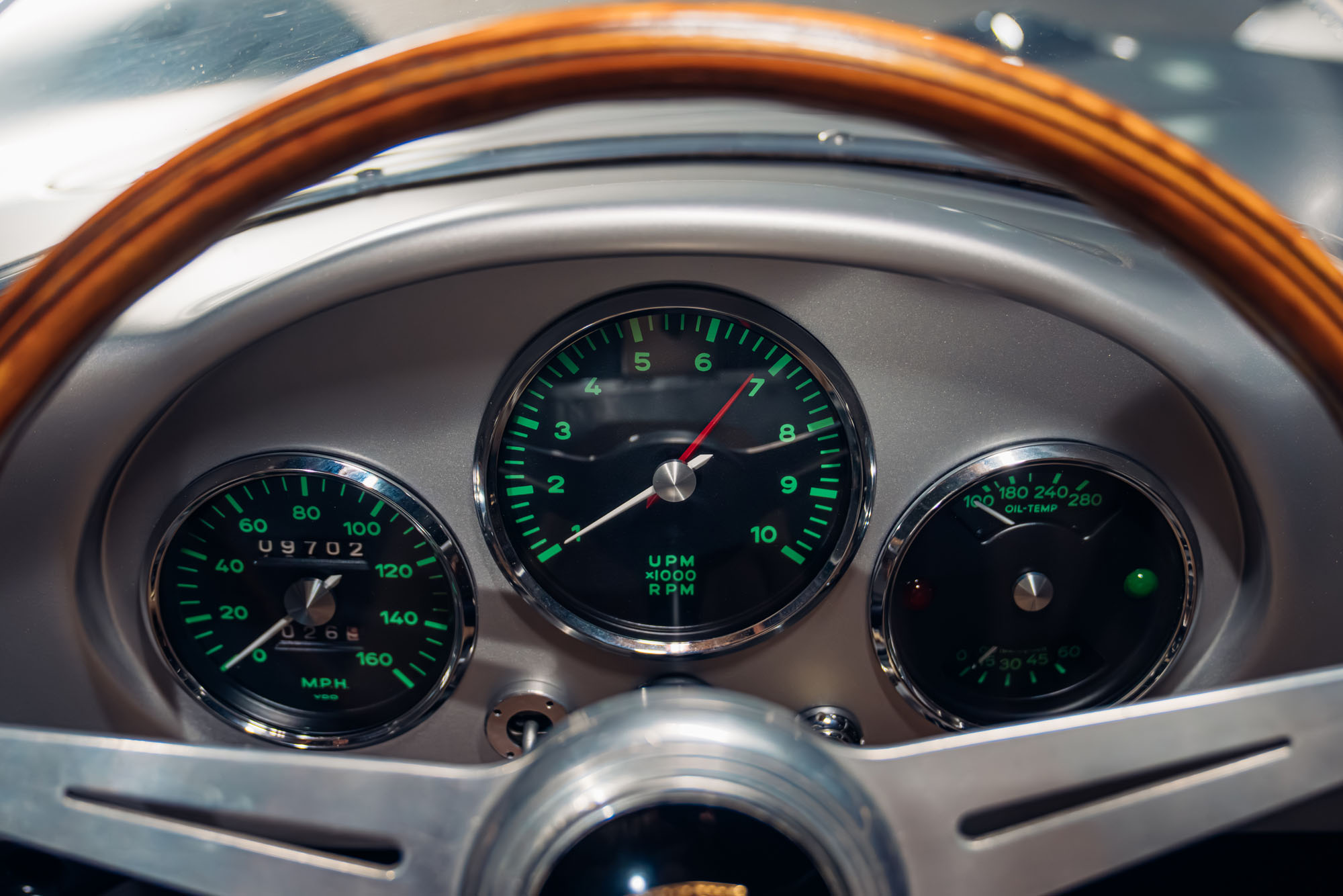 Purchased by a new owner in 2013, the Porsche was exhibited at the Amelia Island Concours d’Elegance the following year, where it won Best in Class for post-war race cars built before 1965. Subsequently acquired by the vendor in August 2018, chassis 550A-0116 was sent to renowned Porsche classic specialist Andy Prill in the United Kingdom in early August 2019 for an exhaustive six-year restoration. As part of the exacting nut-and-bolt overhaul, the bodywork was stripped back to the bare metal and repainted. Furthermore, the engine was rebuilt around a factory-exchange crankcase sourced from Italy (numbered KD P 91040), and the matching-numbers gearbox was reassembled before the project was completed in late August 2025. Invoices on file total more than £307,000. Beyond an initial test drive, the 550A heads to auction in Monaco in what Prill describes as “box-fresh” condition.