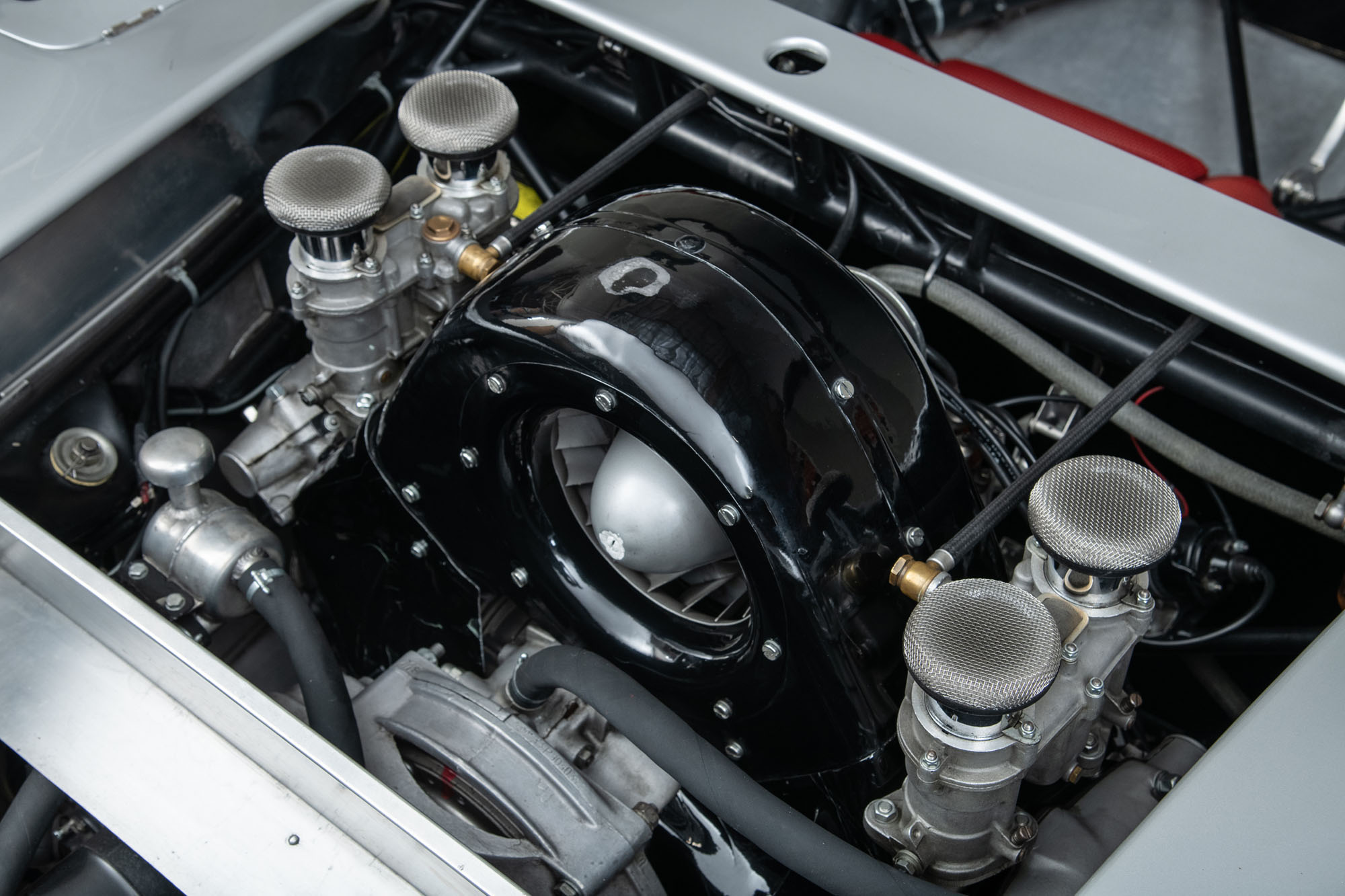 Whereas the RS60 had already addressed evolving FIA regulations with a larger cockpit, a taller windscreen, improved brakes, 15-inch wheels, and a four-inch-longer wheelbase for more predictable handling, the RS61 retained that package virtually unchanged. Both cars used a mid-mounted, air-cooled Type 547 four-cam flat-four of around 1.6 liters, producing roughly 170–178 bhp paired with a five-speed manual and four-wheel independent suspension.