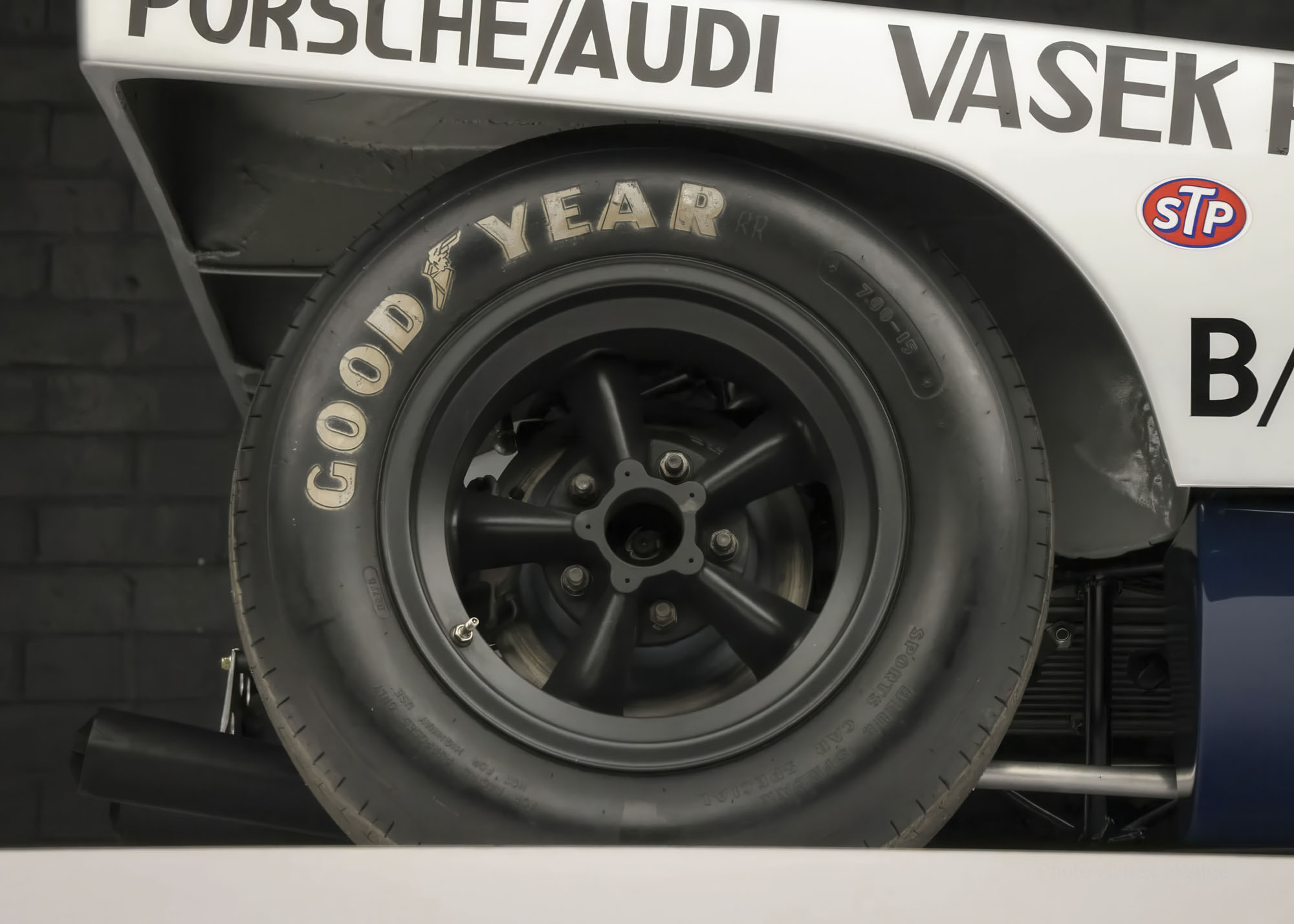 The five-spoke wheels are finished in black and are wrapped in Goodyear Blue Streak Sports Car Special tires measuring 6.00-15 up front and 7.00-15 at the rear. Stopping is handled by ventilated disc brakes with aluminum calipers and dual master cylinders.