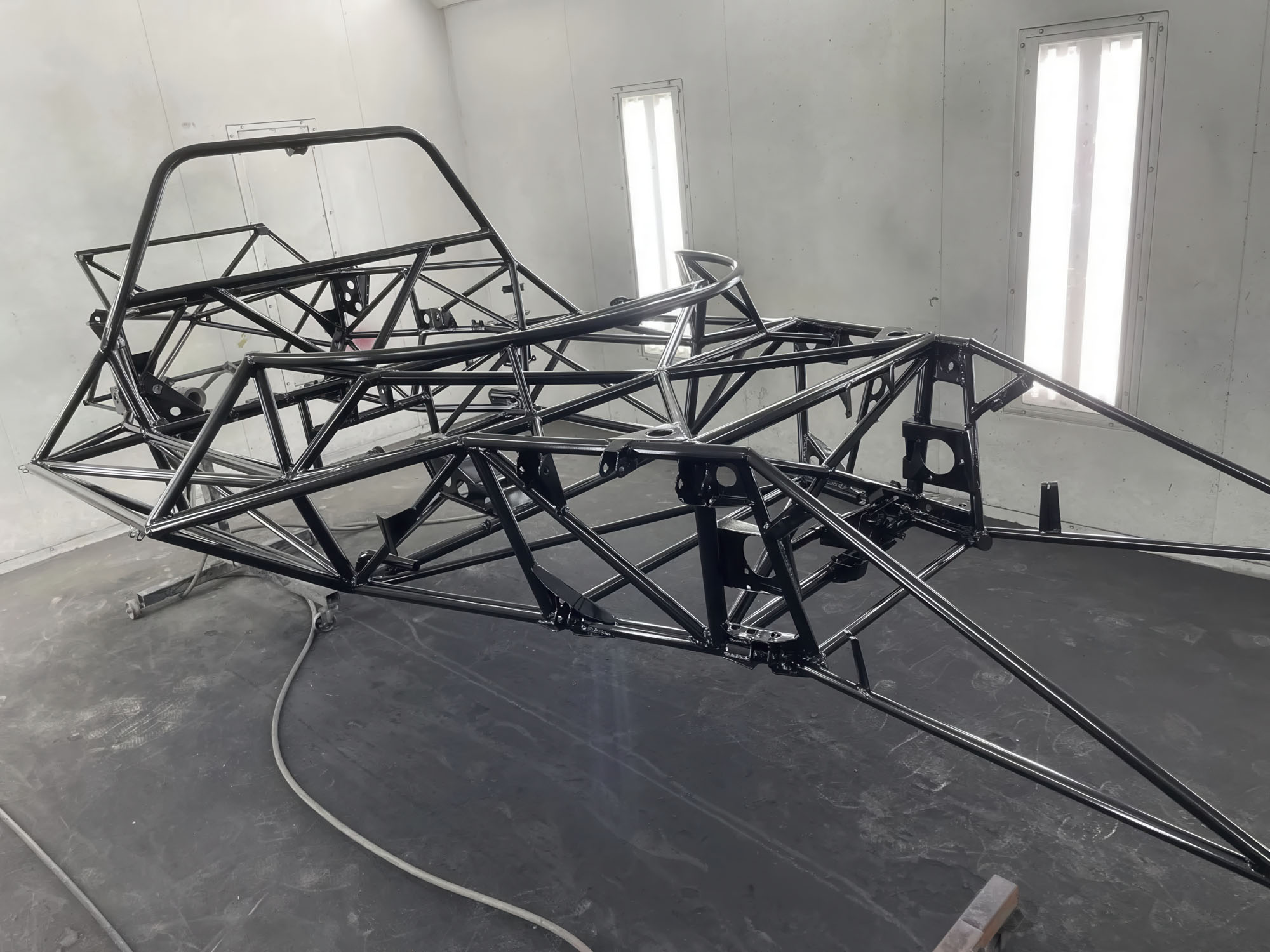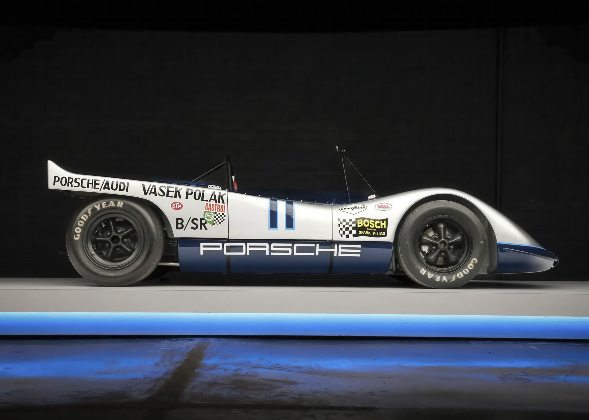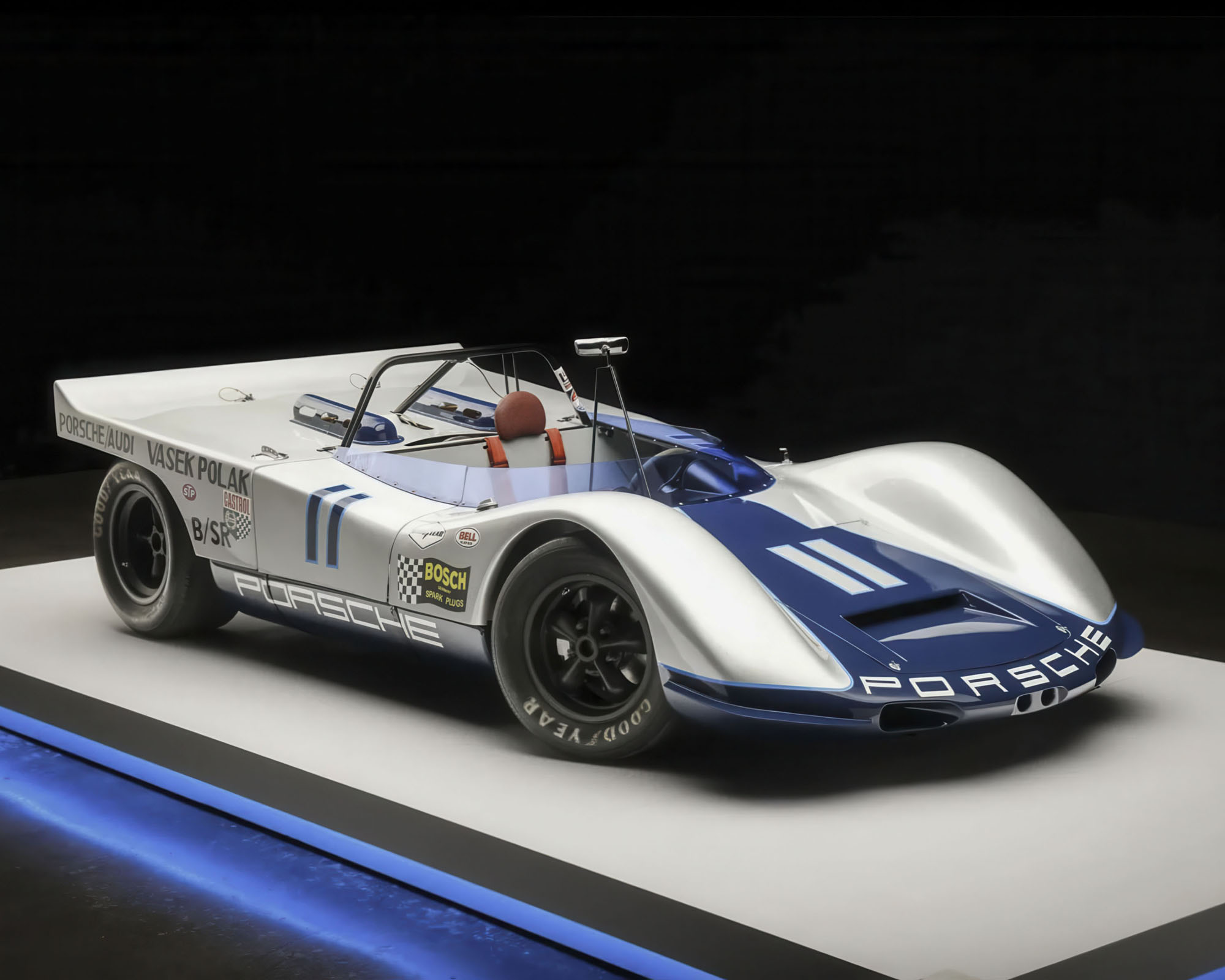 The subsequent build by Kundensport included the fabrication of a replacement frame with the integration of Spyder chassis elements, refurbishment of the body panels used during Polak’s ownership, featuring a corresponding silver Vasek Polak livery, and the installation of a Super Tec Performance-built 2.0L flat-six engine and a magnesium-case five-speed manual transaxle.