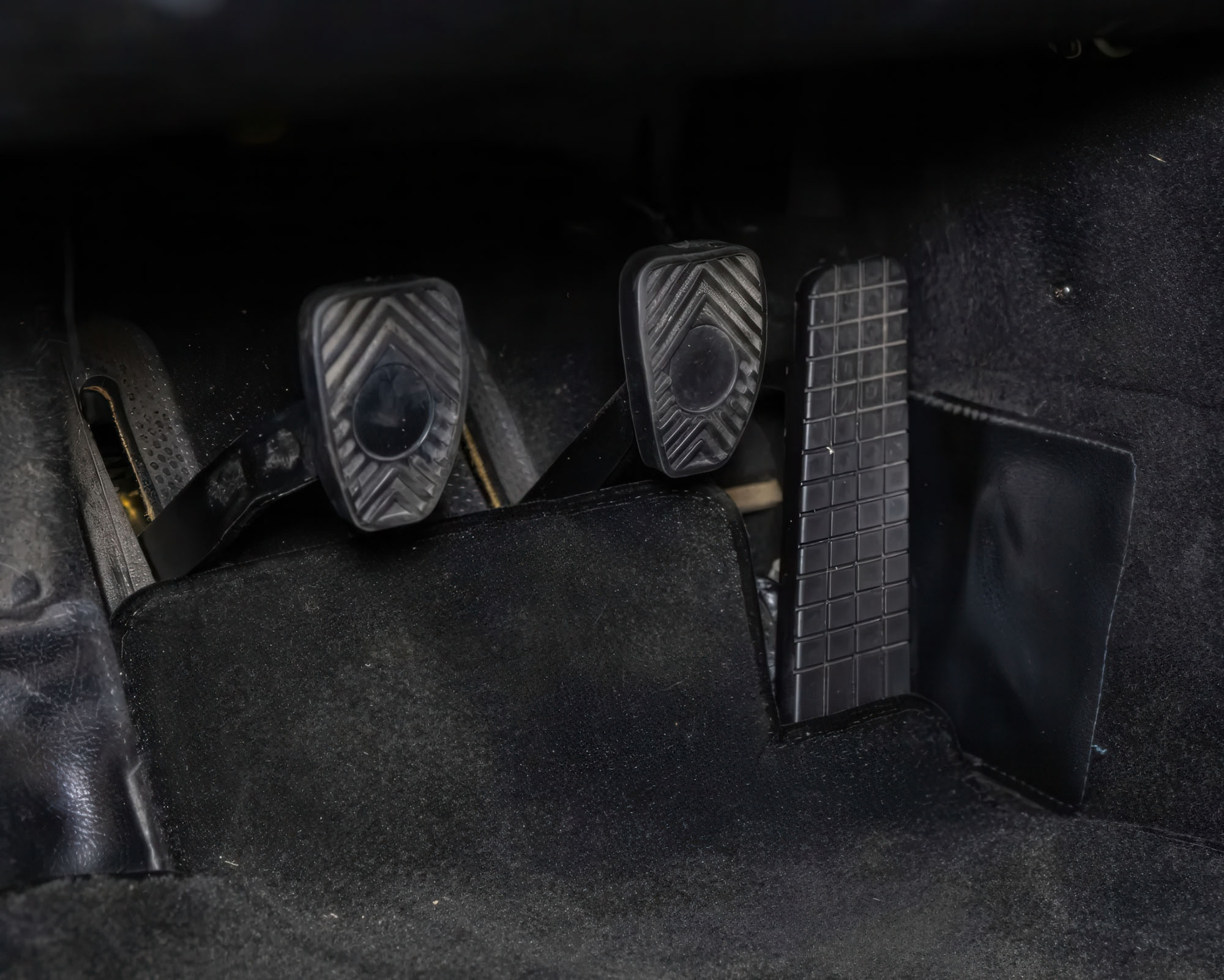 Power is sent to all four wheels through a six-speed manual transaxle with a limited-slip differential, and the transaxle was also resealed in 2014. The clutch was overhauled in 2012, at which time the hydraulic cylinder and pressure accumulator were replaced, and a clutch line was changed in 2014. A replacement shift rod and linkage coupling were fitted in April 2018.