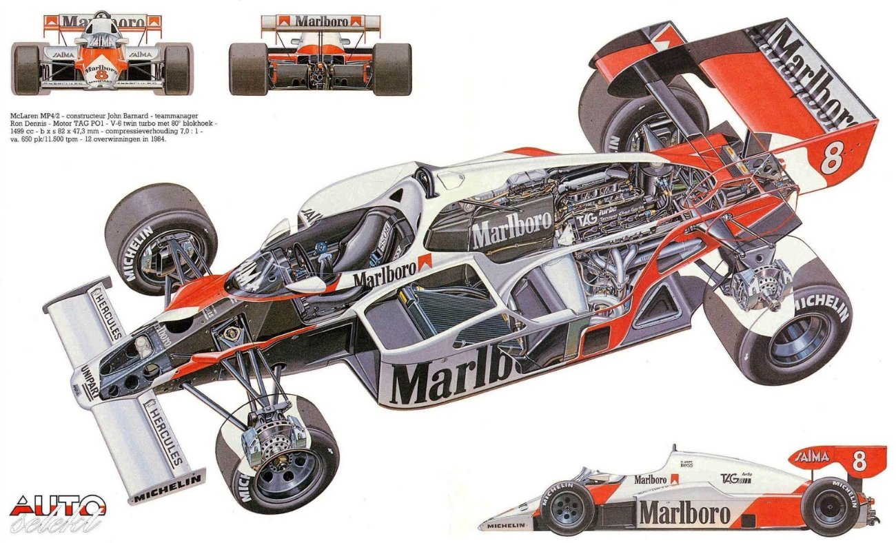 McLaren MP4/2 TAG Porsche, 1984, Cutaway.