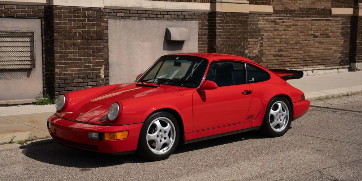 This 1993 Porsche 911 RS America is one of 701 examples built during a two-year production run. It is powered by a 3.6-liter flat-six paired with a five-speed manual transaxle and is finished in Guards Red over black cloth. Equipment includes a power sunroof, a fixed rear spoiler, RS lowering...