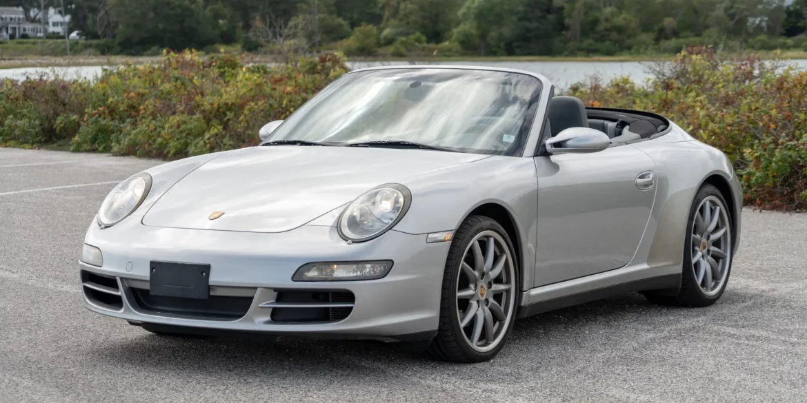This 2006 Porsche 911 Carrera 4 cabriolet is finished in Atlas Gray Metallic over Black Standard leather and is powered by a 3.6-liter flat-six that drives all four wheels through a six-speed manual transaxle. It spent time in the Carolinas, Texas, and Washington state before the current owner’s 2023 acquisition,...