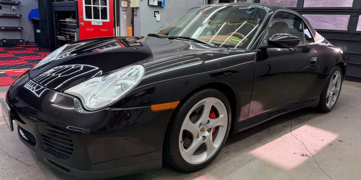 This 2004 Porsche 911 Carrera 4S cabriolet was purchased by the seller in 2005 and now has 22k miles. The car is finished in Basalt Black Metallic over Natural brown leather and is powered by a replacement 3.6-liter flat-six that was installed in August 2005 and drives all four wheels...