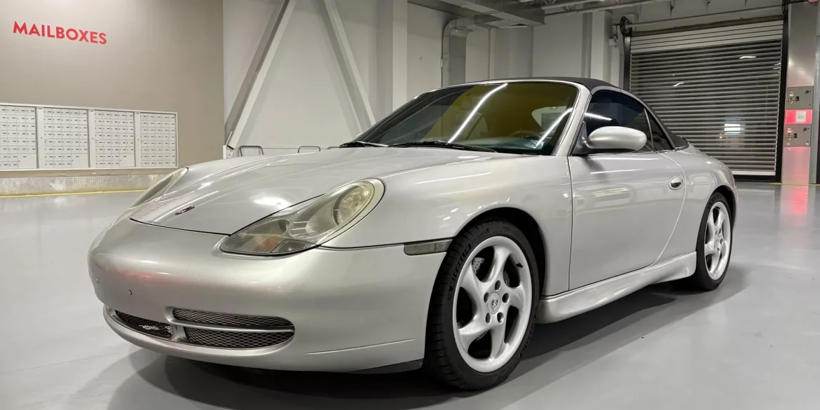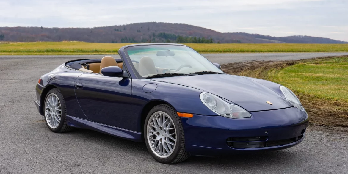 This 1998 Porsche 911 Carrera cabriolet was purchased by the current owner in 2001 and shows 49k miles. Powered by a 3.6-liter flat-six paired with a four-speed Tiptronic transaxle, the car is finished in black over black leather upholstery. Equipment includes a black soft top, 17″ wheels, power-adjustable front seats,...