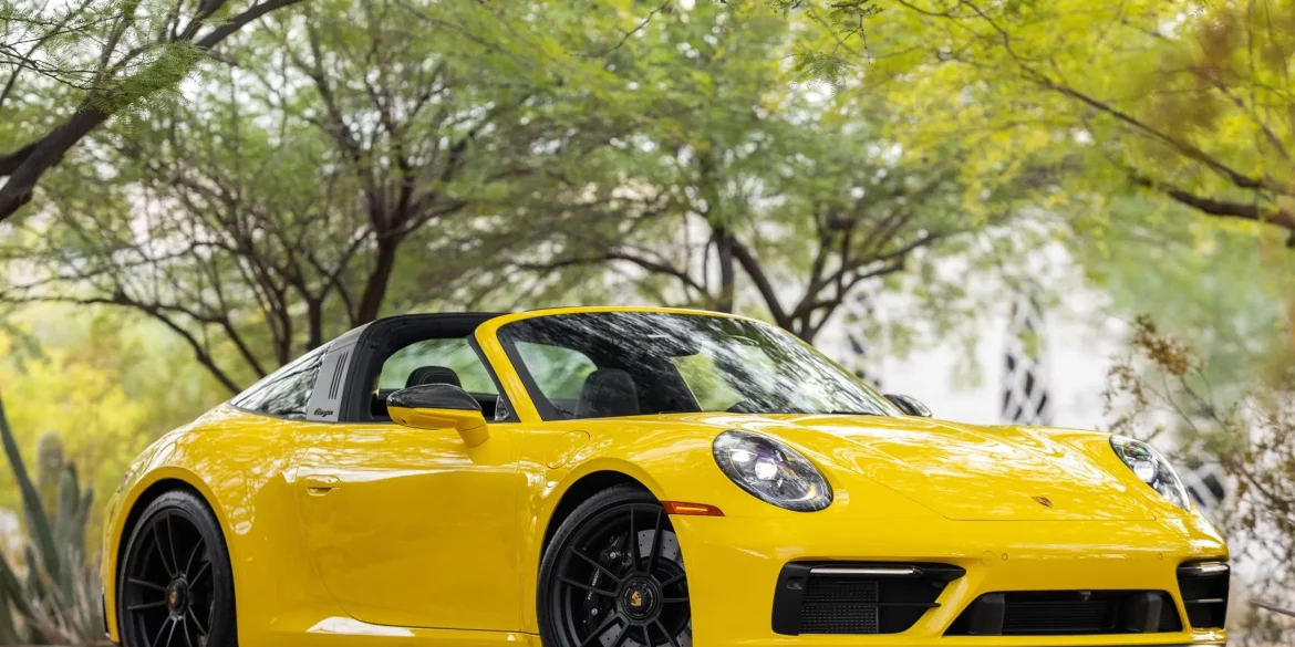 This 2024 Porsche 911 Targa 4 GTS is finished in Racing Yellow over black leather upholstery and is powered by a twin-turbocharged 3.0L flat-six that drives all four wheels through an eight-speed PDK dual-clutch automatic transaxle. Equipment includes a retractable Targa top, LED-Matrix Design headlights, front and rear parking sensors,...