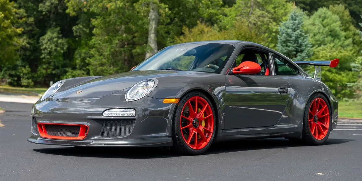 This 2010 Porsche 911 GT3 has 2,900 miles and is powered by a 3.8-liter flat-six linked with a six-speed manual transaxle and a limited-slip differential. Finished in Arctic Silver Metallic over black leather and Alcantara, the car is equipped with the Sound Package Plus, the Sport Chrono Package Plus, silver...