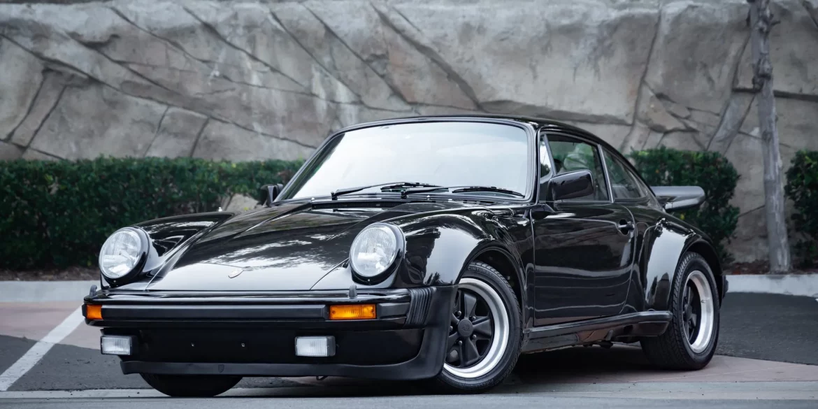 This 1987 Porsche 911 Turbo is a factory M505 slant nose coupe that was purchased by the current owner in 2001. Powered by a turbocharged 3.3-liter flat-six paired with a four-speed manual transaxle, the car is finished in black over black leather upholstery. The car is equipped with 16″ Fuchs...