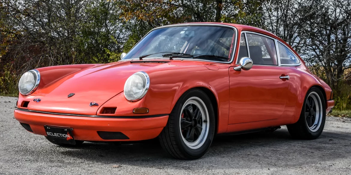 This 1977 Porsche 911S coupe was acquired by the selling dealer in 2024 and was subsequently fitted with a 3.2-liter flat-six. The car has been modified with steel rear fender flares, a whale-tail decklid, and H4 headlights, and it is finished in Continental Orange over black leatherette and cloth upholstery....