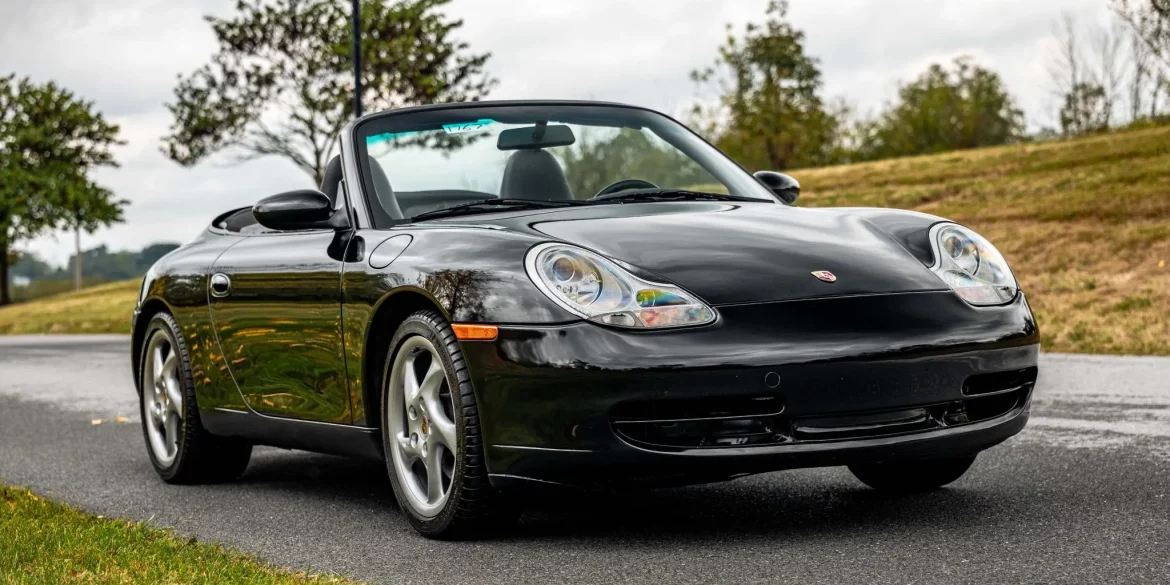 This 1999 Porsche 911 Carrera cabriolet is finished in black over black full leather and is powered by a 3.4-liter M96 flat-six linked to a six-speed manual transaxle and a limited-slip differential. Features include a black soft top as well as 18″ Turbo-look wheels, xenon headlights, a deployable rear spoiler,...