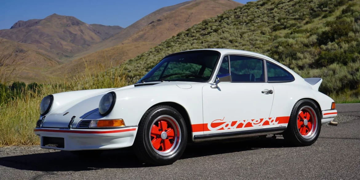 This 1976 Porsche 912E was modified in RS-style under prior ownership, including the installation of a fiberglass ducktail decklid and bumpers along with a 2.7L flat-six. The car is finished in Grand Prix White with red Carrera graphics over black and houndstooth cloth upholstery, and equipment includes 15″ Fuchs wheels...