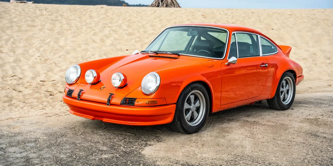This 1970 Porsche 911T Coupe has been modified as a tribute to the 1974 Carrera RS 2.7 model, featuring a rebuilt 2.7-liter flat-six engine with Bosch mechanical fuel injection, ported heads, Turbo-style valve covers, and SSI heat exchangers. Finished in orange over a black interior, the car also includes an...