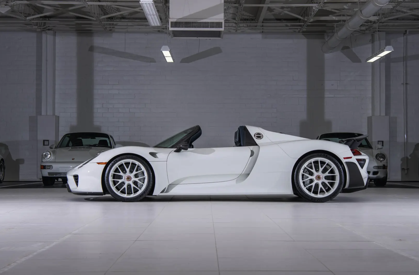 The 2015 Porsche 918 Weissach Spyder that commanded $3,937,500 at The White Collection, Lot 2157 stands as one of the most remarkable modern Porsche auction results ever recorded. This example wasn’t just any 918 Spyder—it was a factory-built hypercar finished to a truly one-of-a-kind specification through Porsche Exclusive Manufaktur, complete with the highly sought Weissach performance package. Its bespoke paint-to-sample Grand Prix White finish, matching magnesium Weissach wheels, and an interior swathed in Yacht Blue leather make it a singular specimen among the already rare limited-production 918 family.