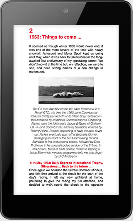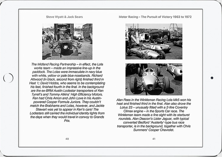 The page count and the photo count are reflected in the price of the book, which at £45.00 (UK) is not a push-over. But the reader will be pleasantly surprised at the value of the content contained within the pages of this publication. If your goal is to have a really comprehensive library containing a wide selection of motorsport subjects, then you will be glad to have this one on your bookshelf. Unfortunately, this book is now out of print, but enthusiasts can purchase the new eBook version (details below), or a search on the Internet should find you a good used copy.