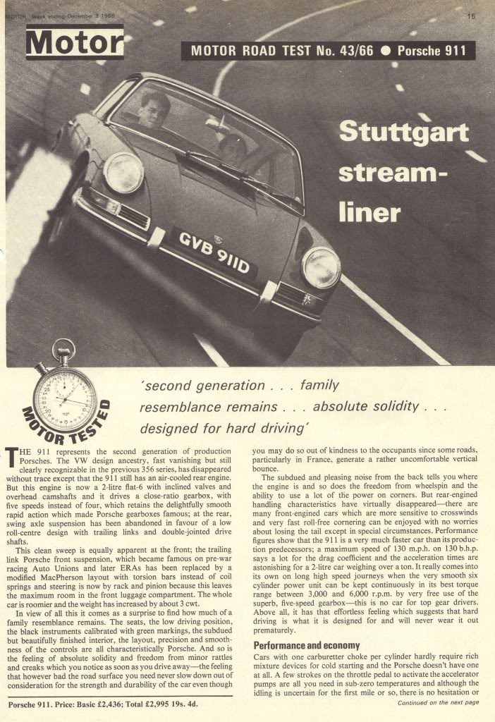 Motor Road Test – Porsche 911 (Motor mag. 42/1966)