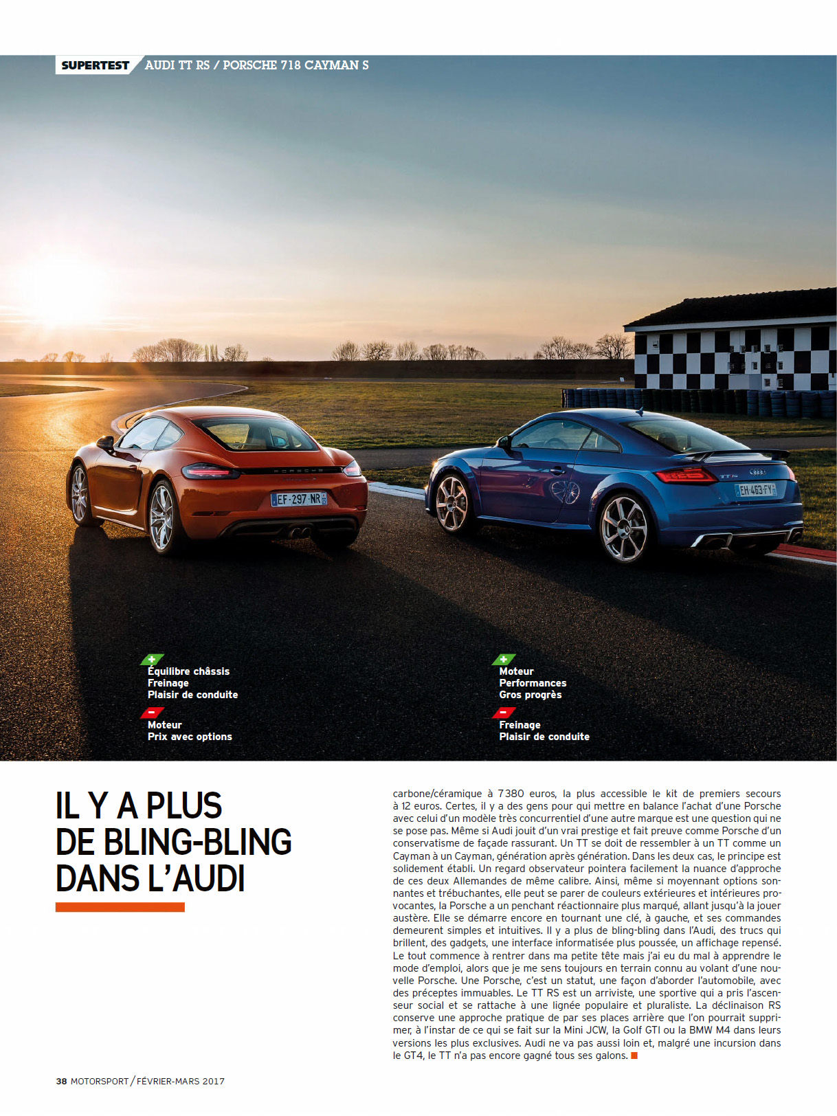 Motor Sport Reviews the Porsche 982 Cayman S vs Audi TTRS