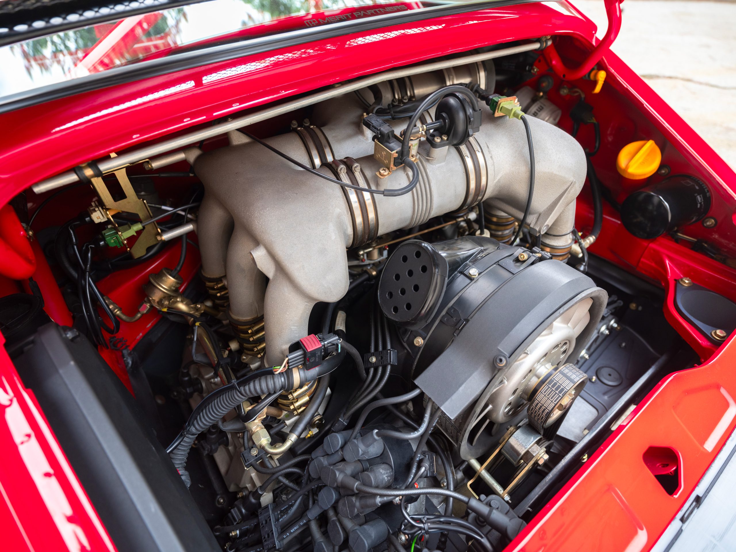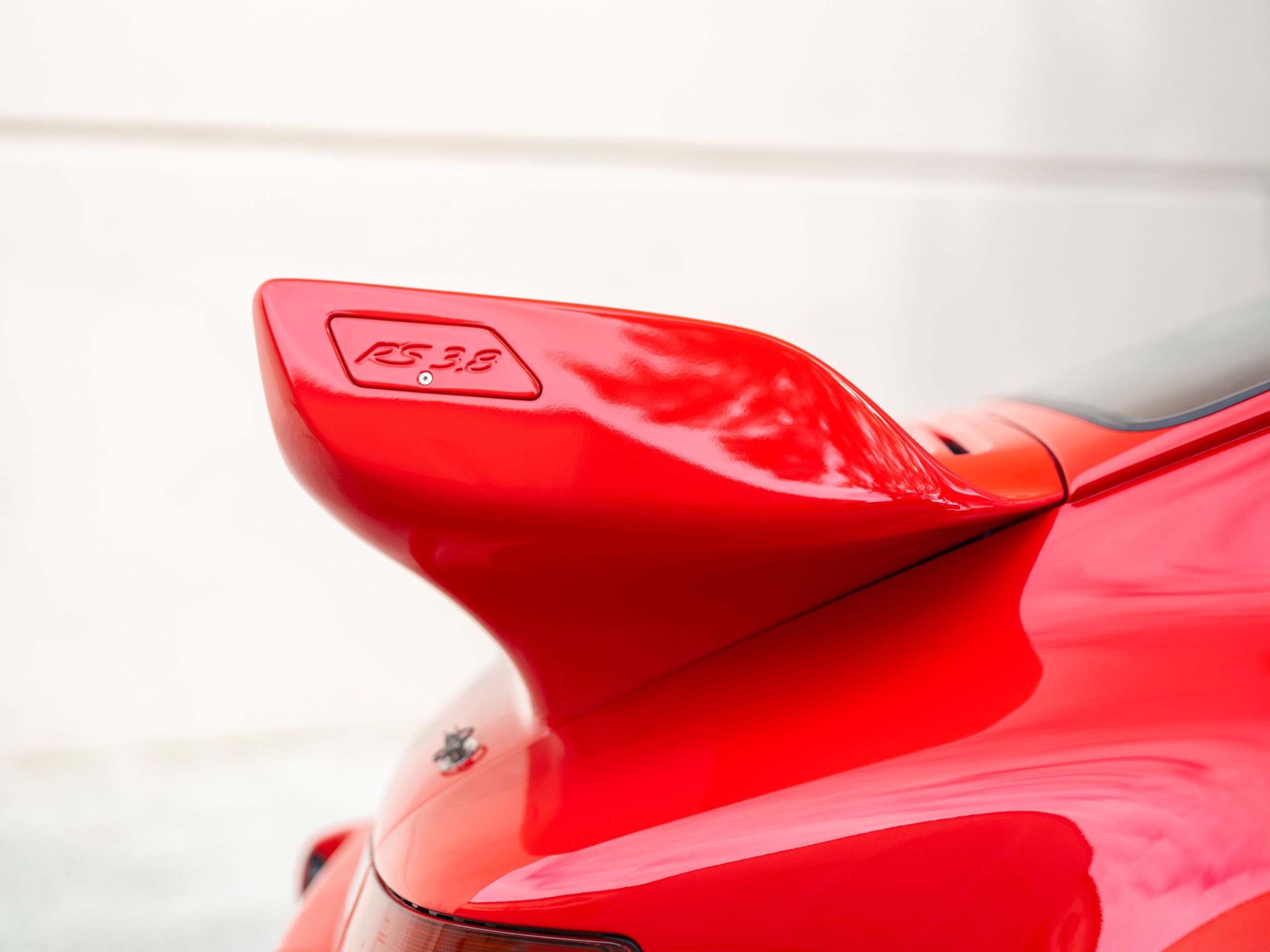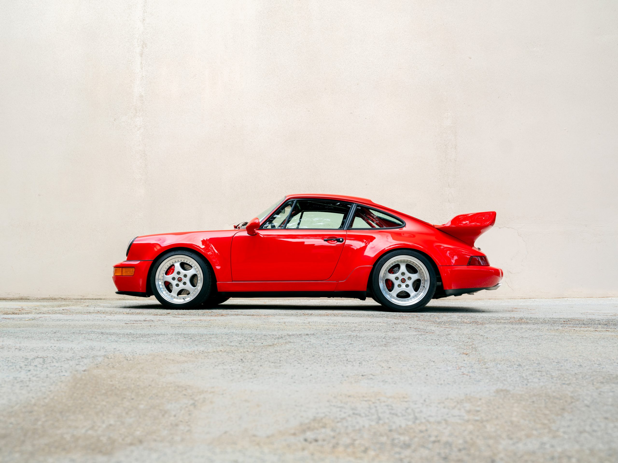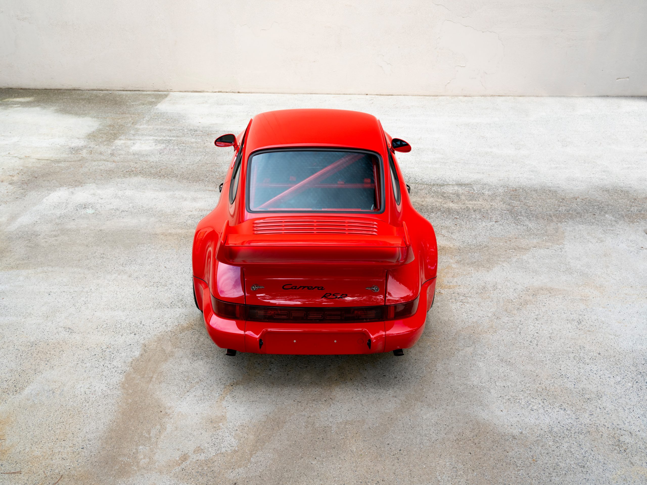 The featured Carrera RSR 3.8, chassis 496090, is exceptionally rare, having never been raced and showing only 39 kilometers (~25 miles). Delivered to its first owner in Germany in December 1993, it later joined a prestigious Japanese collection before being imported to the U.S. and undergoing a $40,000 service to make it road-ready.