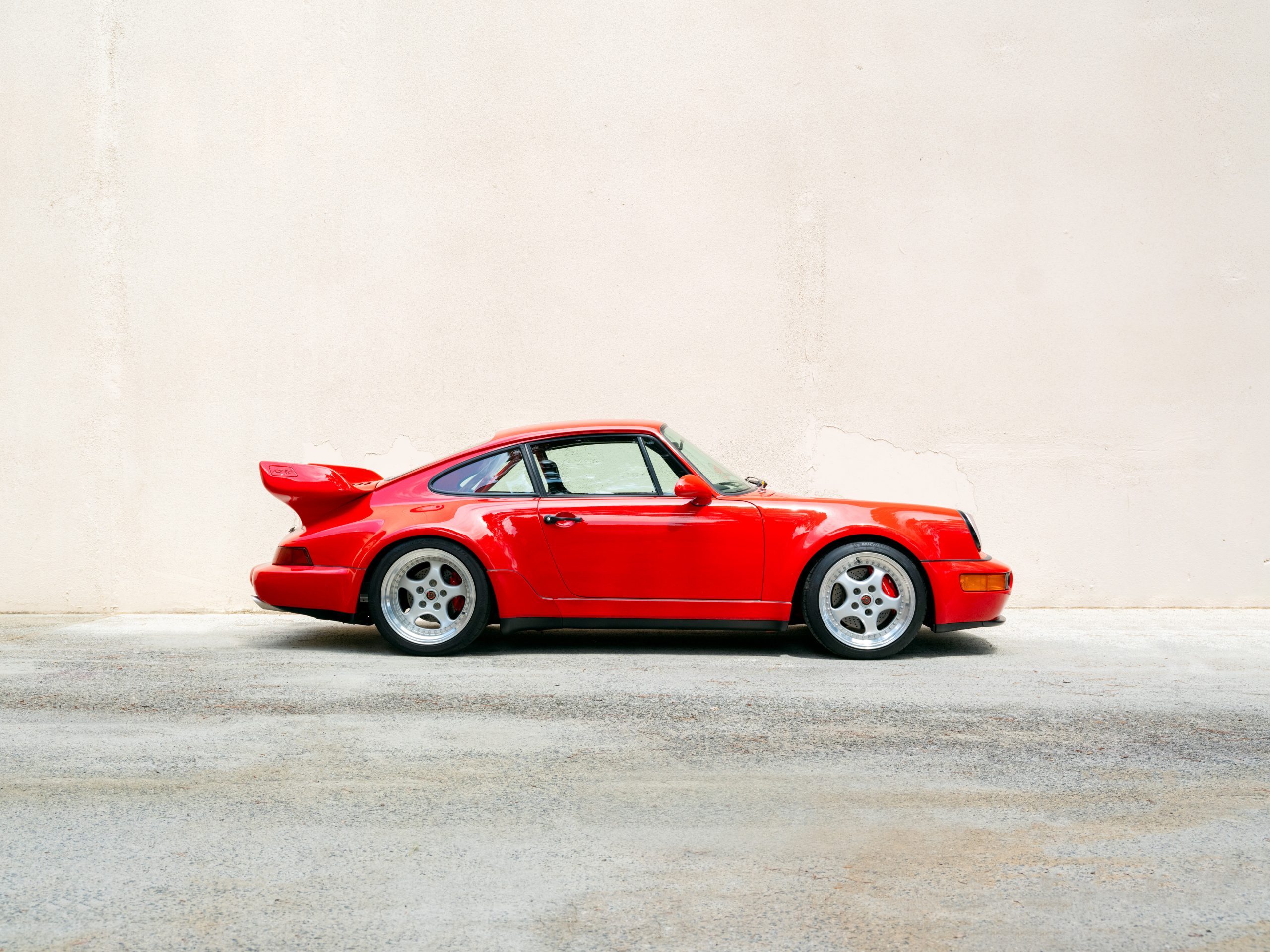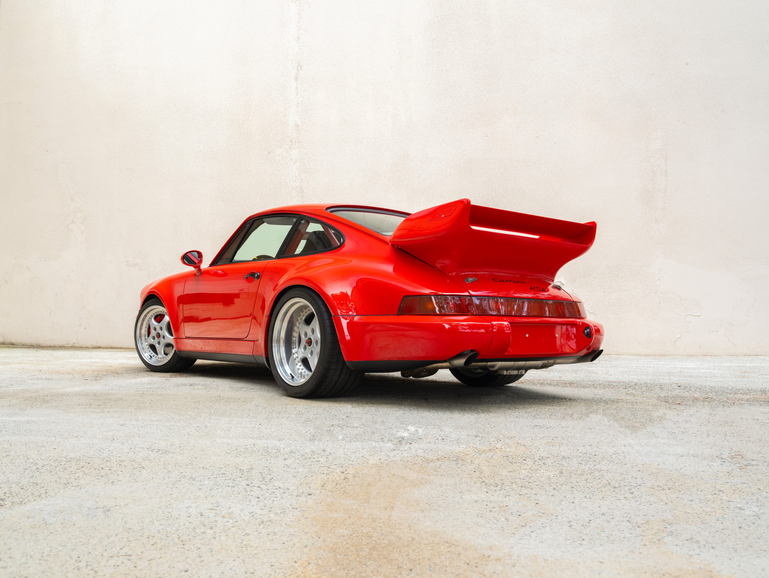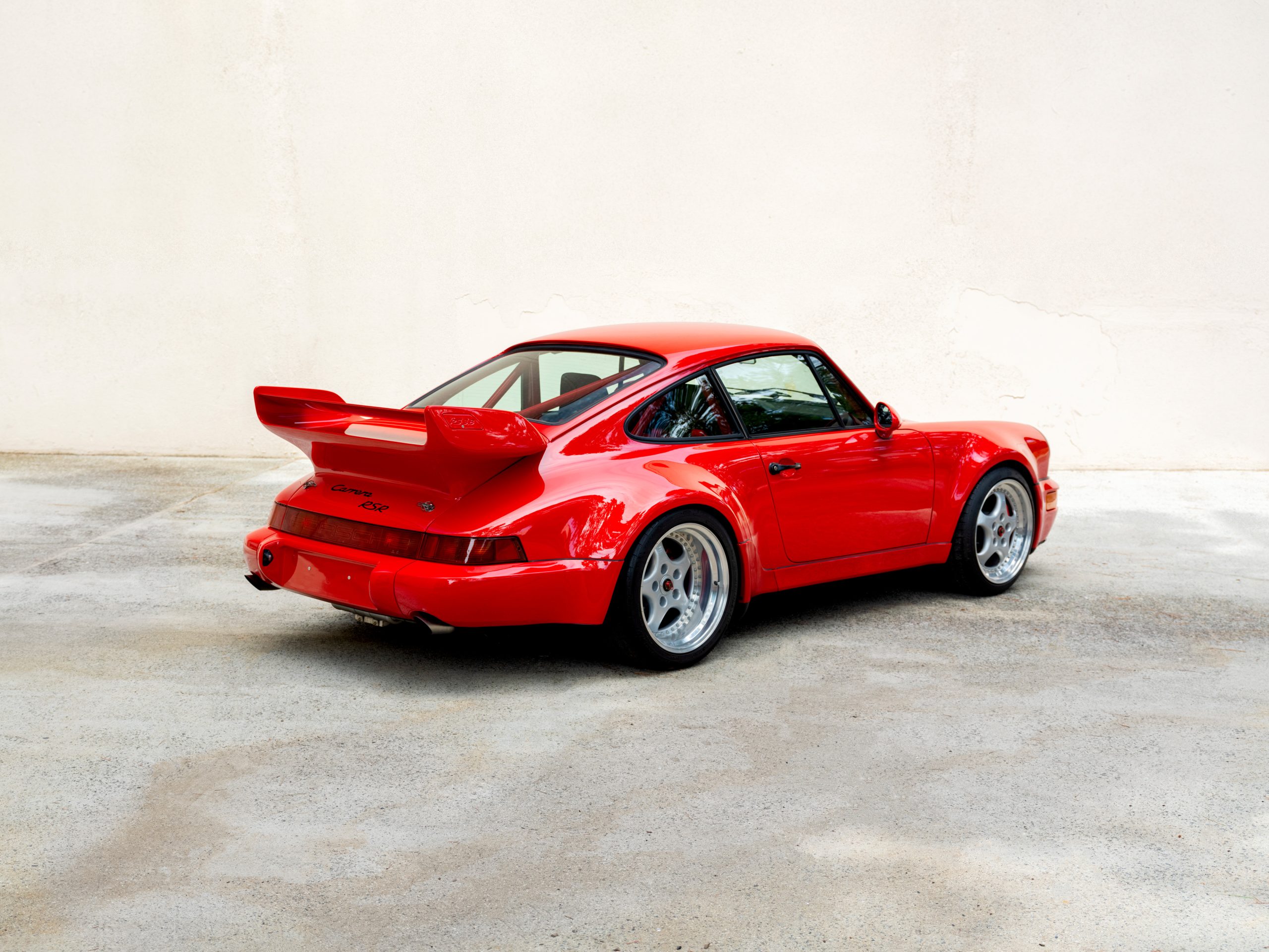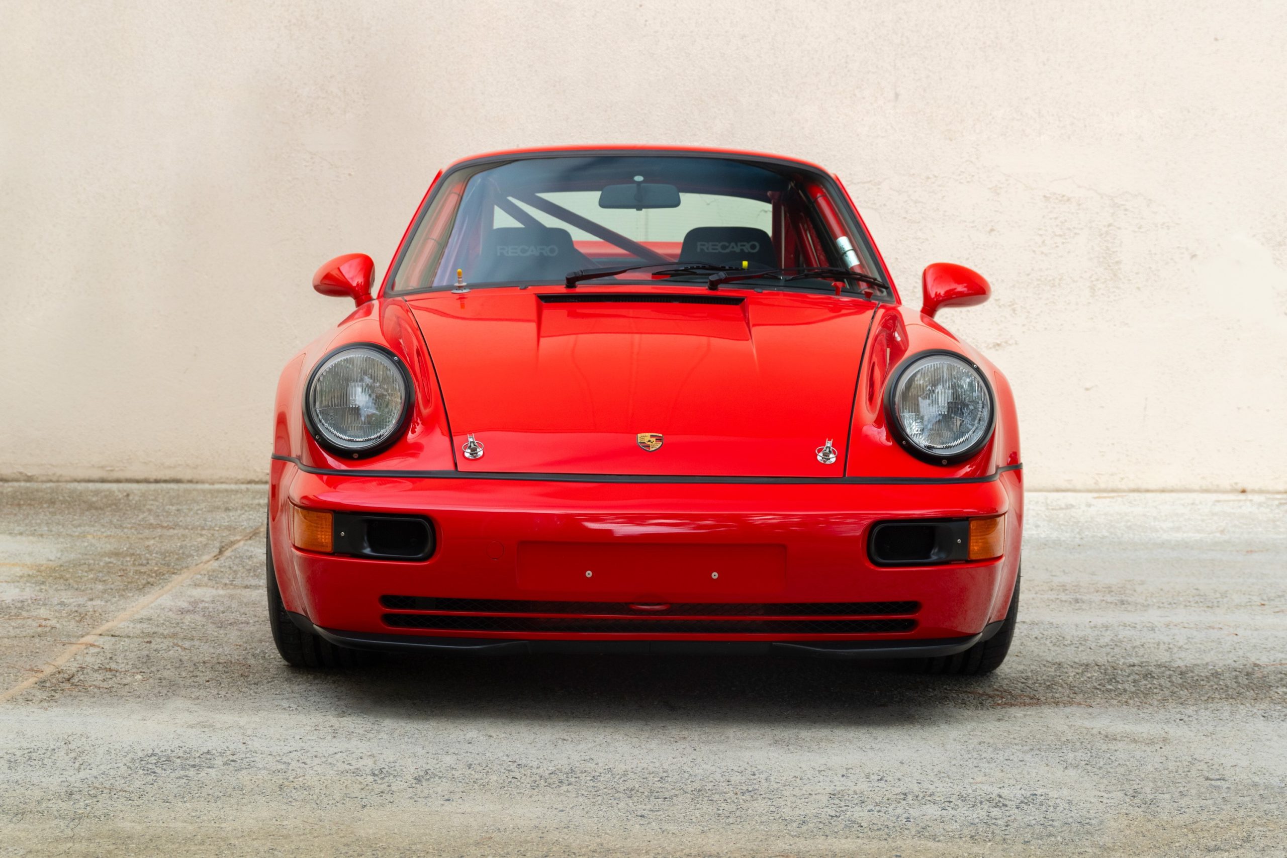 In 1992, Porsche launched the lightweight Carrera RS variant, based on the Carrera Cup competition model, for the European market. The RS model’s 3.6-liter engine produced 260bhp, while the later Carrera RS 3.8 increased bore size to 3,746cc and output to 300bhp, featuring a Turbo-style body. The RSR competition version offered 325-350hp, with only around 50 units produced by the end of 1993, including two Strassenversion.