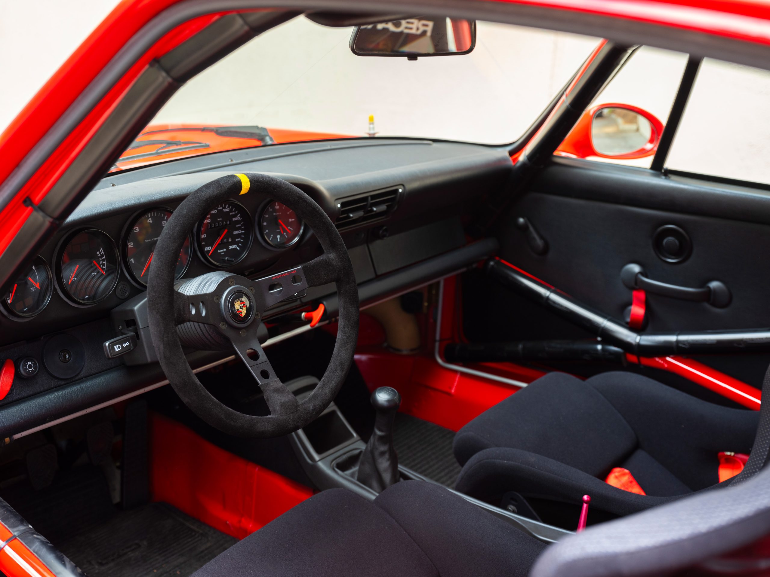 Finished in Guards Red and equipped with unique features such as a locking differential, 120-liter fuel tank, ADAC GT-type exhaust, Le Mans gear ratios, air jacks, leather-wrapped steering wheel, and a six-point racing harness for the passenger seat, is now titled and registered in Montana.