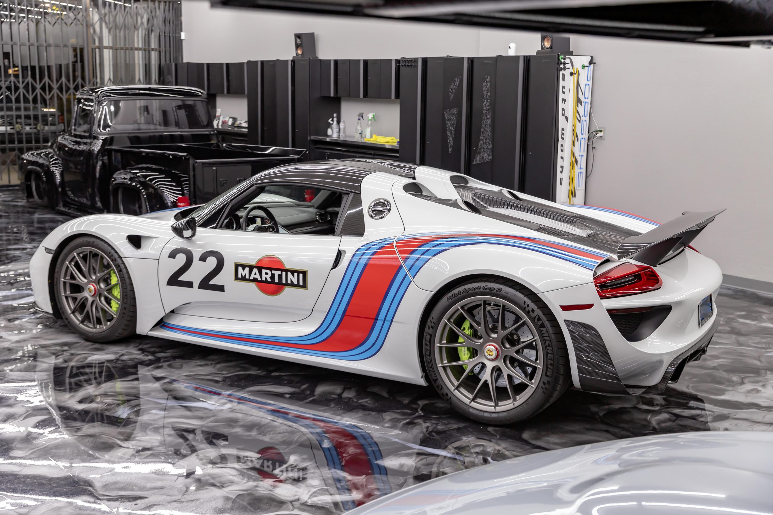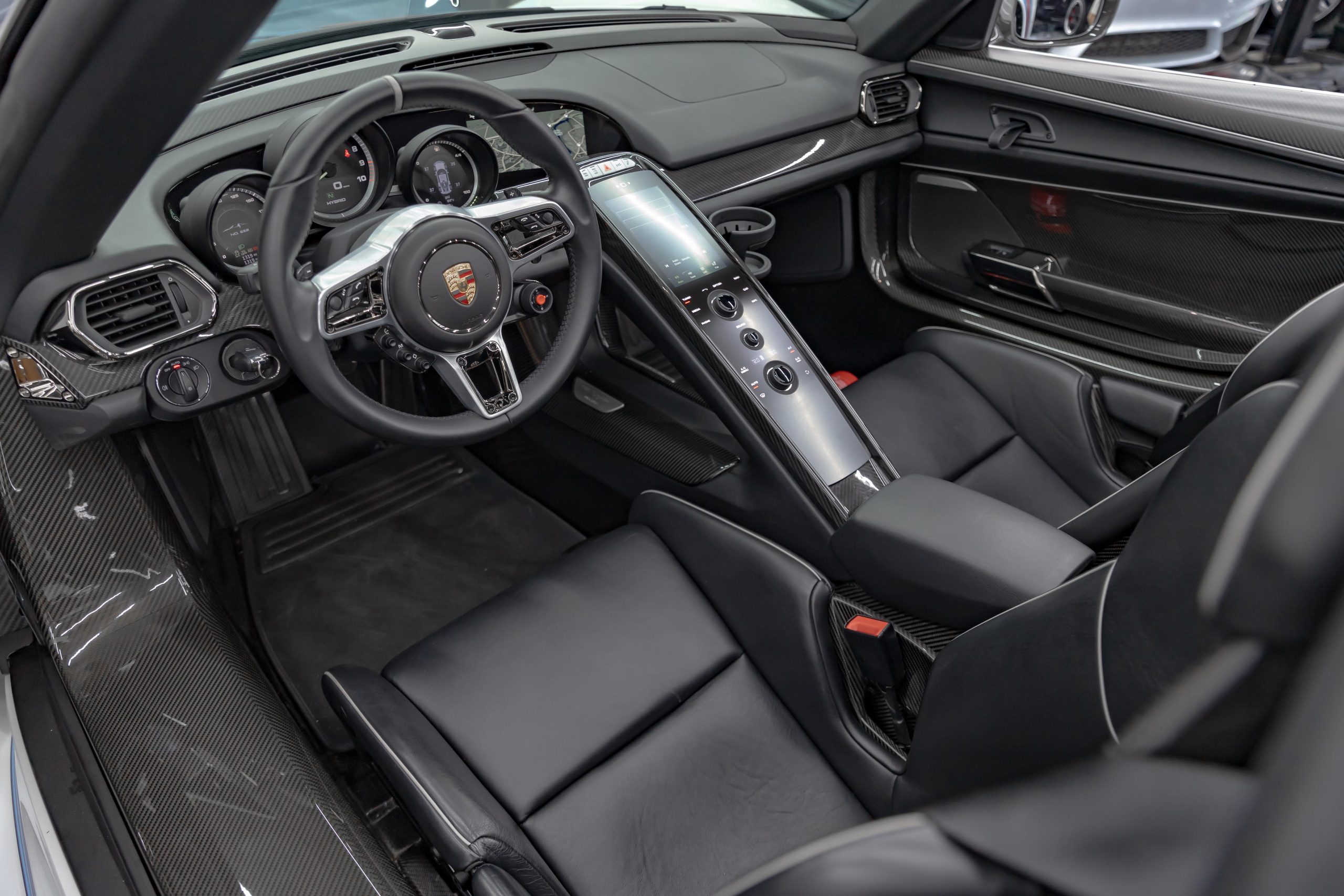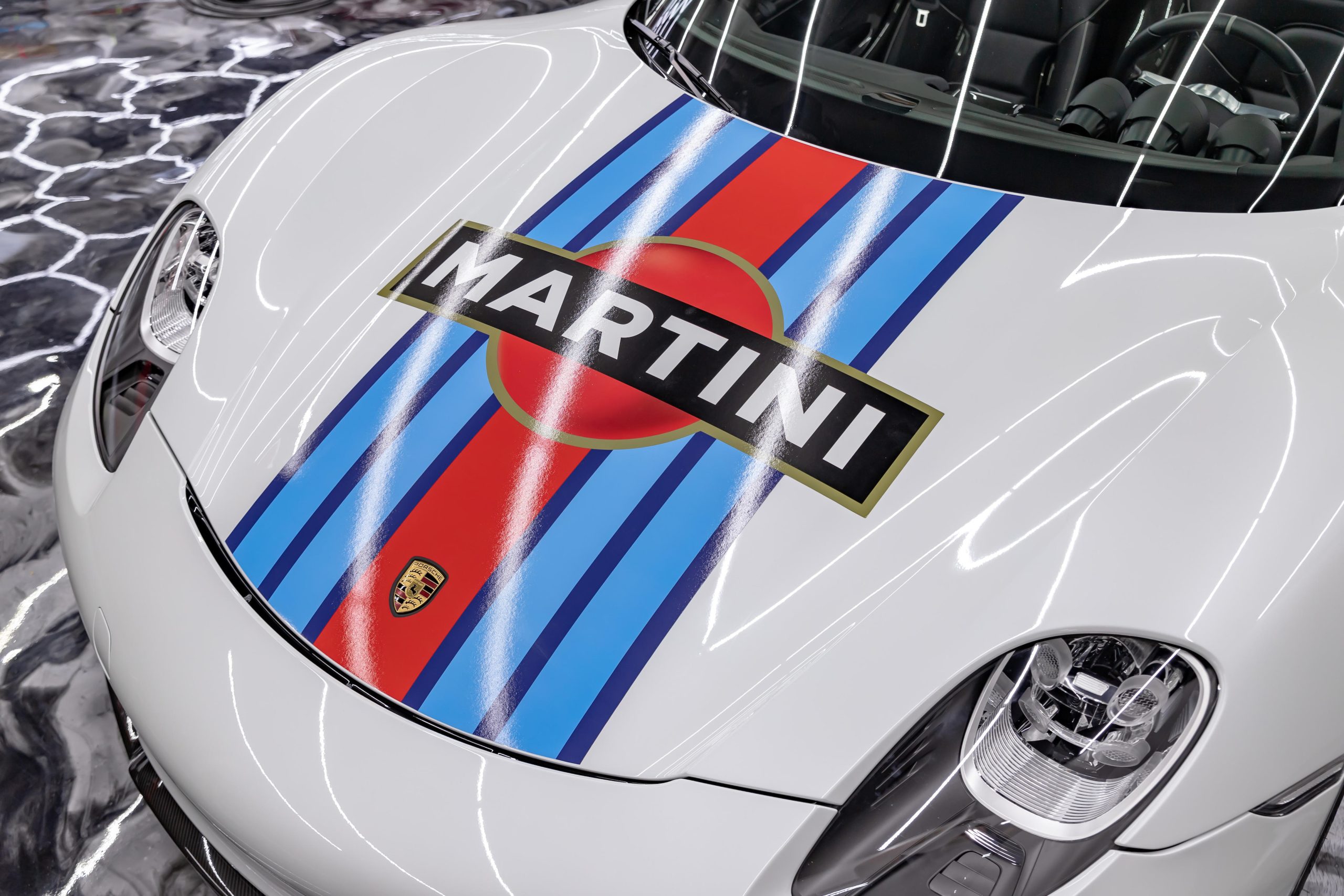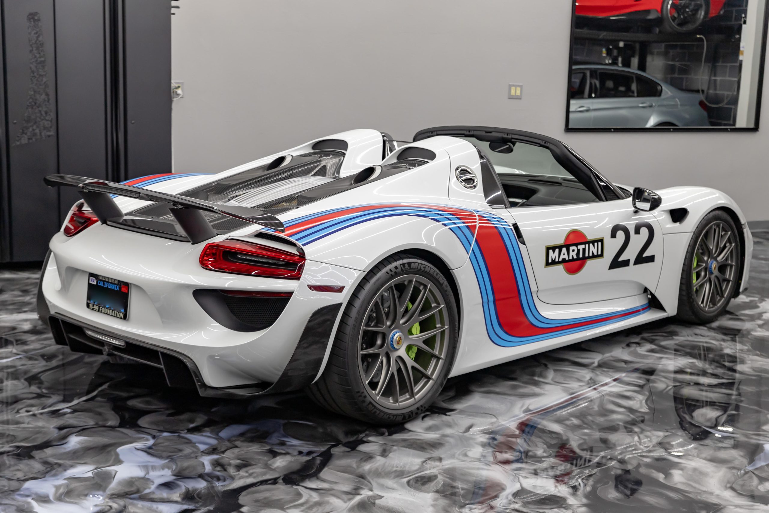 The 2015 918 Spyder offered here, delivered new to the USA, is a stunning example finished in Paint to Sample Oryx White with factory-applied Martini stripes and equipped with the desirable Weissach Package. This package includes lightweight magnesium wheels, carbon fiber components, and special interior trim, reducing the car’s weight by 100 pounds.