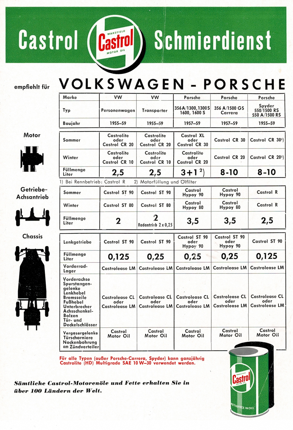 Porsche (1955-1959): lubrication service (Castrol)