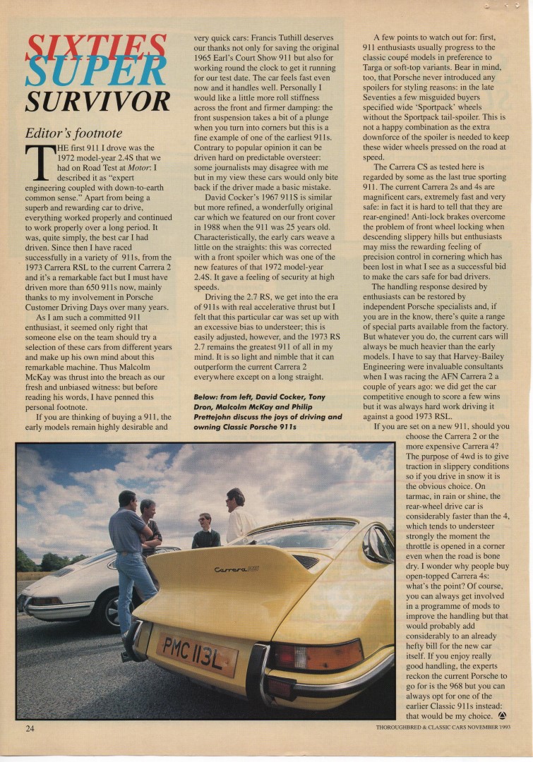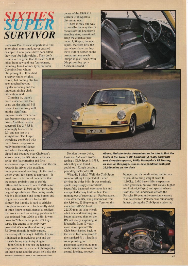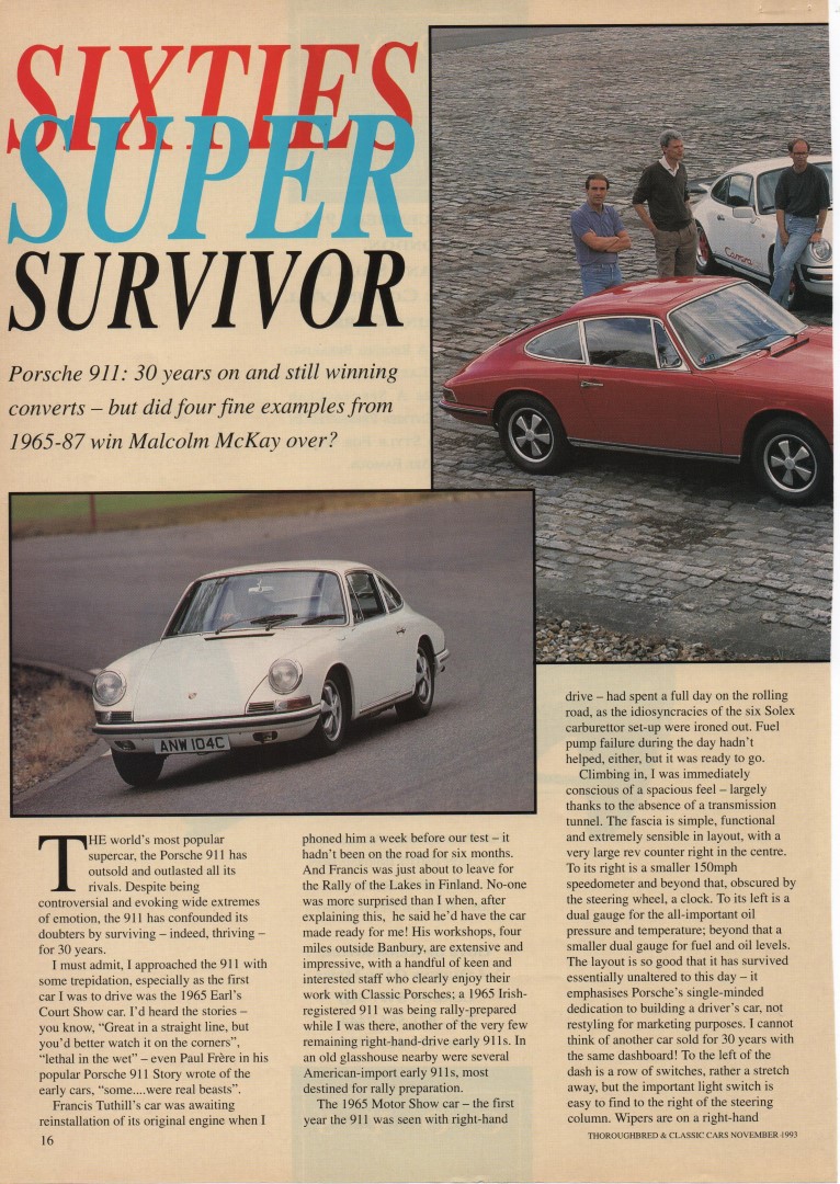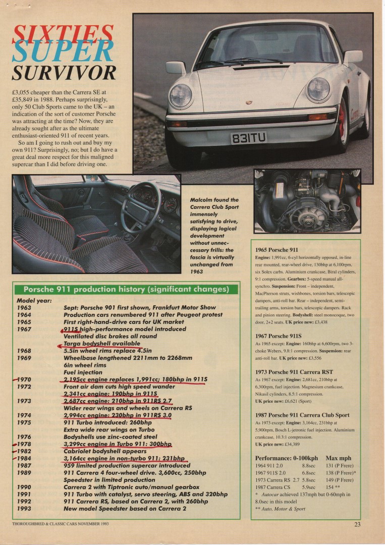Porsche 911 2.0 (1965) &911 911S 2.0 (1967) & 911 Carrera RS Touring (1973) & 911 Carrera 3.2 Club Sport (1988)