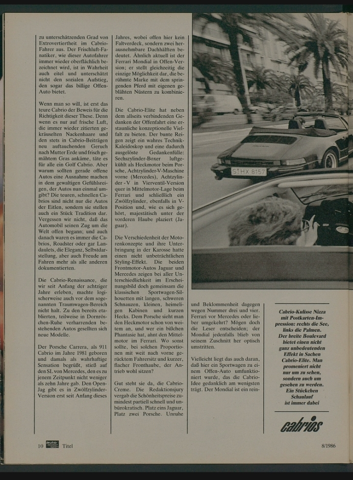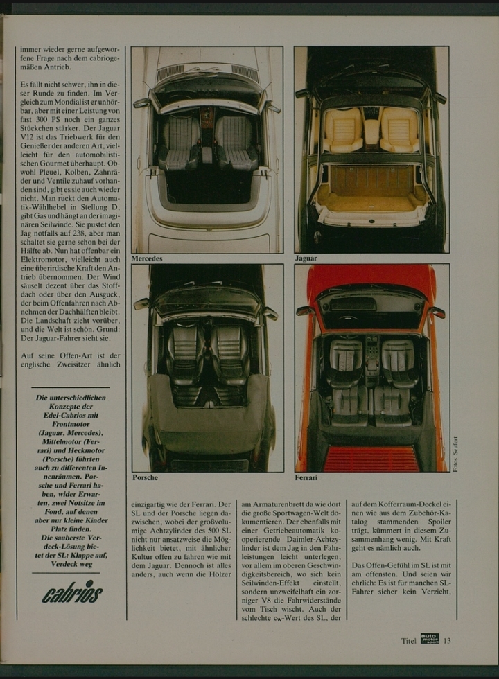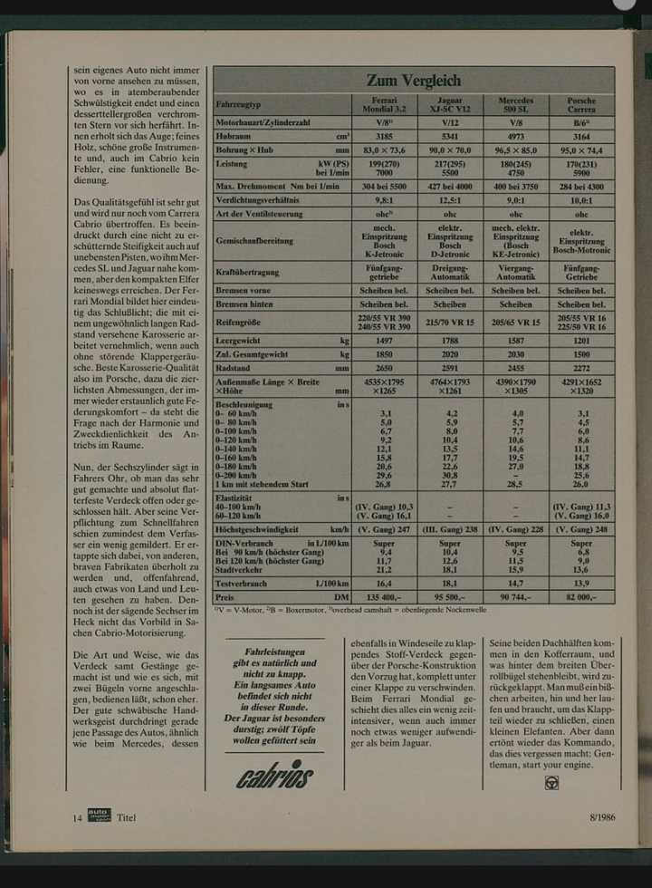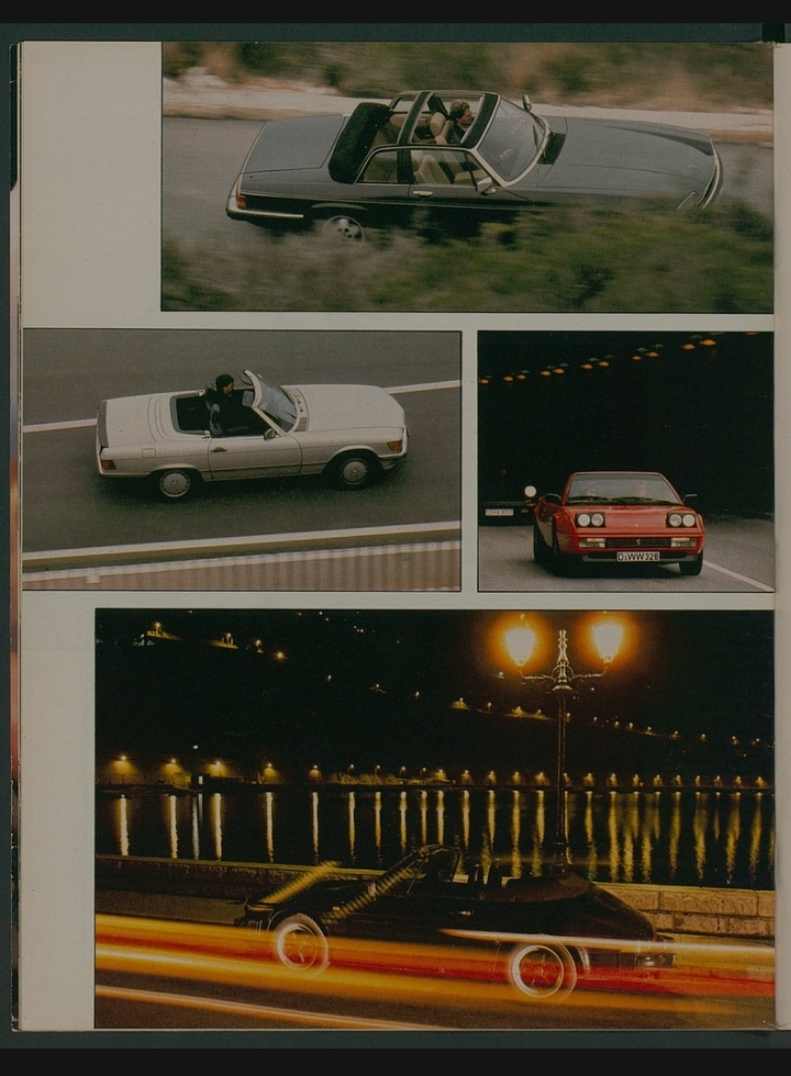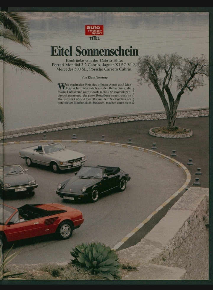 Porsche 911 Carrera 3.2 Cabriolet vs Mercedes 500SL vs Jaguar XJSC vs Ferrari Mondiale