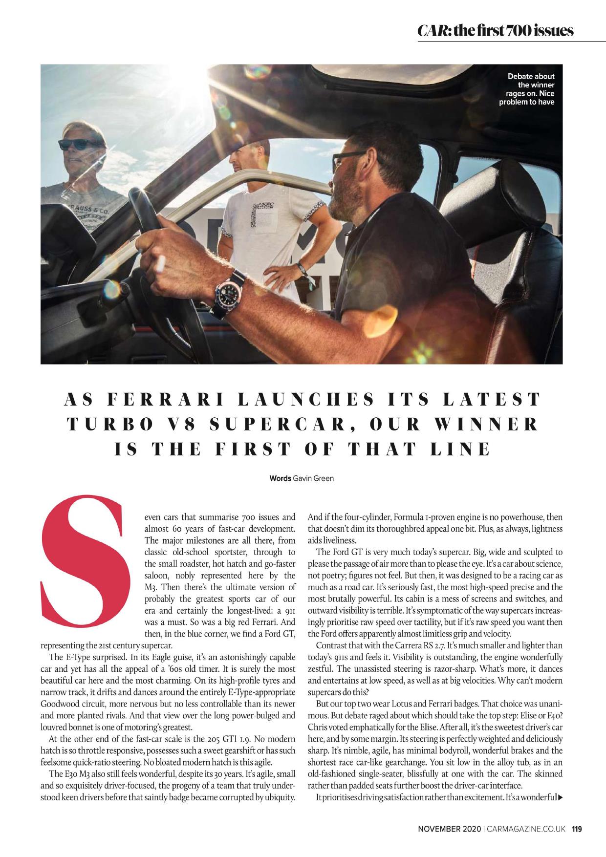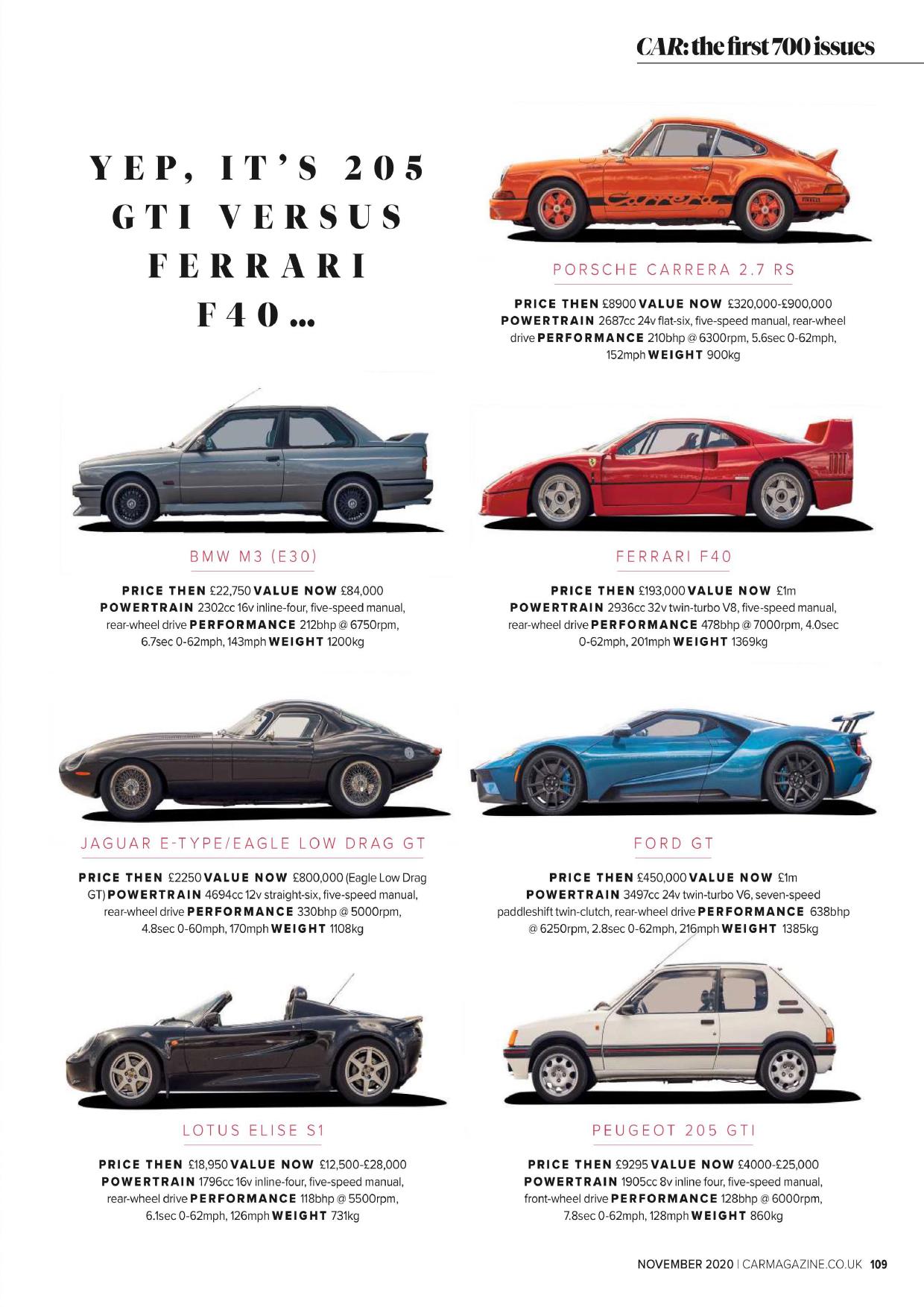 Porsche 911 Carrera RS 2.7 vs BMW M3 (E30) vs Ferrari F40 vs Ford GT vs Jaguar E-type vs Lotus Elise S1 vs Peugeot 205 GTi