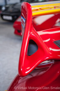McLean pointed out that the wheels on the car are still the ones from its racing life in period, “You can see the Alex Job Racing logo spray-painted onto the inner barrels of the wheels. It is commonplace for teams to mark up their rims because at the track you might have twenty or thirty teams rocking up with tyre trolleys and dumping wheels for tyre fitting, and those wheels have got to go back to the right team. It is a nice indication that Alex Job’s marking is still on those rims, so they must be at least one of the sets of rims that the car raced on in ‘97 or ‘98.”
