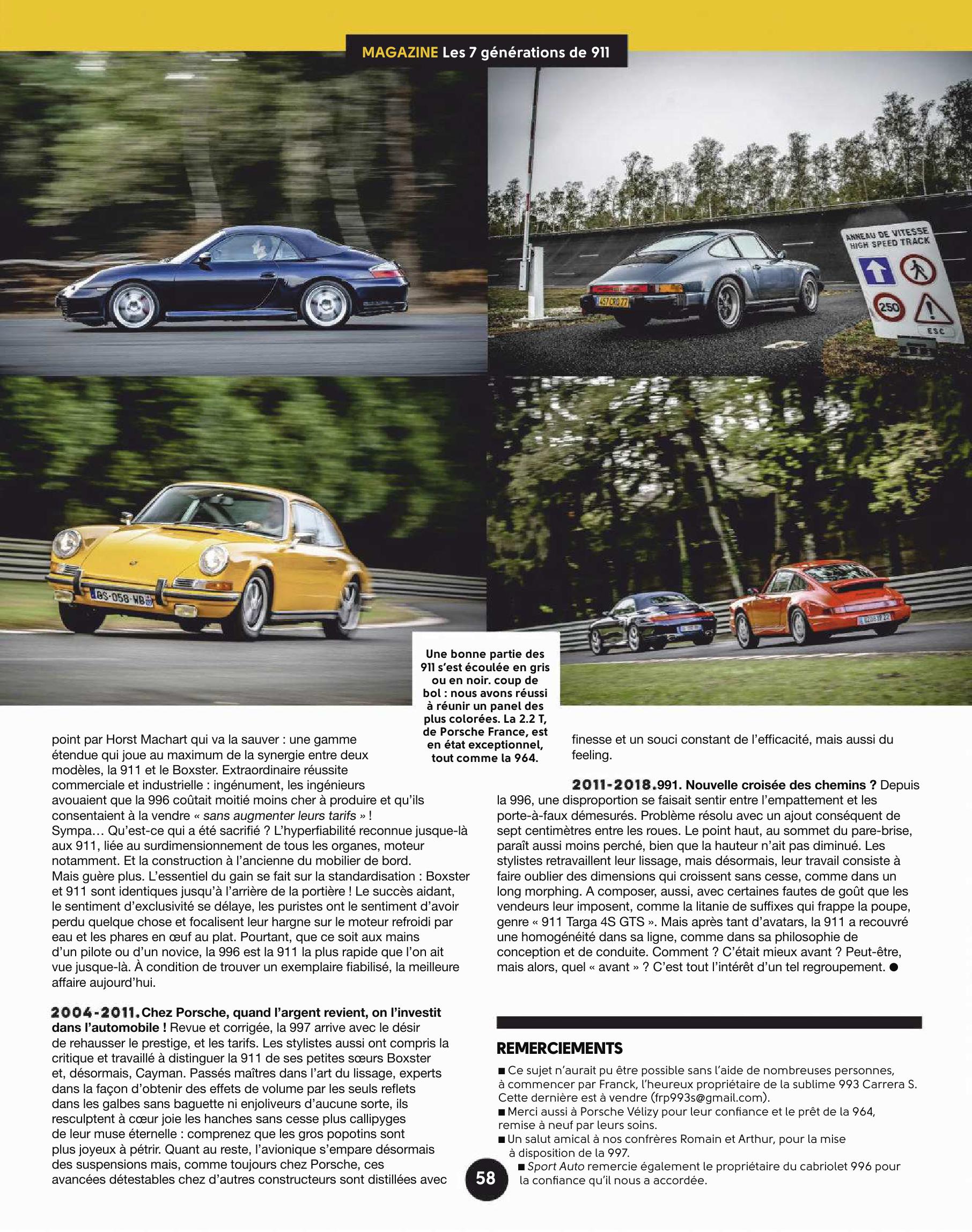 Porsche 911 T 2.2, 911 SC, 964 Carrera 4, 993 Carrera S, 996 Carrera 4S, 997 Carrera Mk I, 991 Carrera T