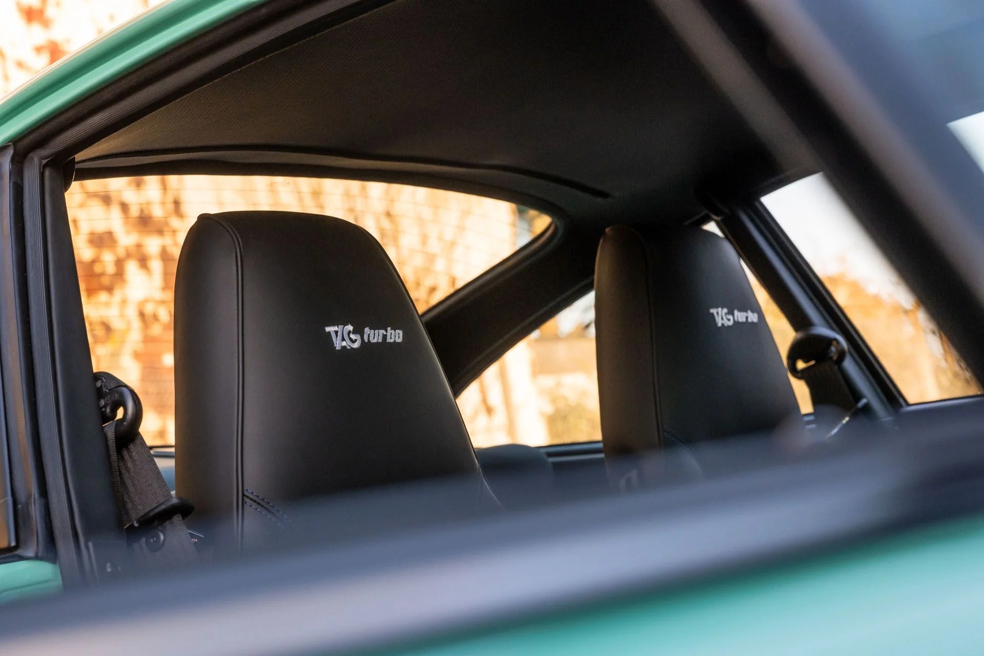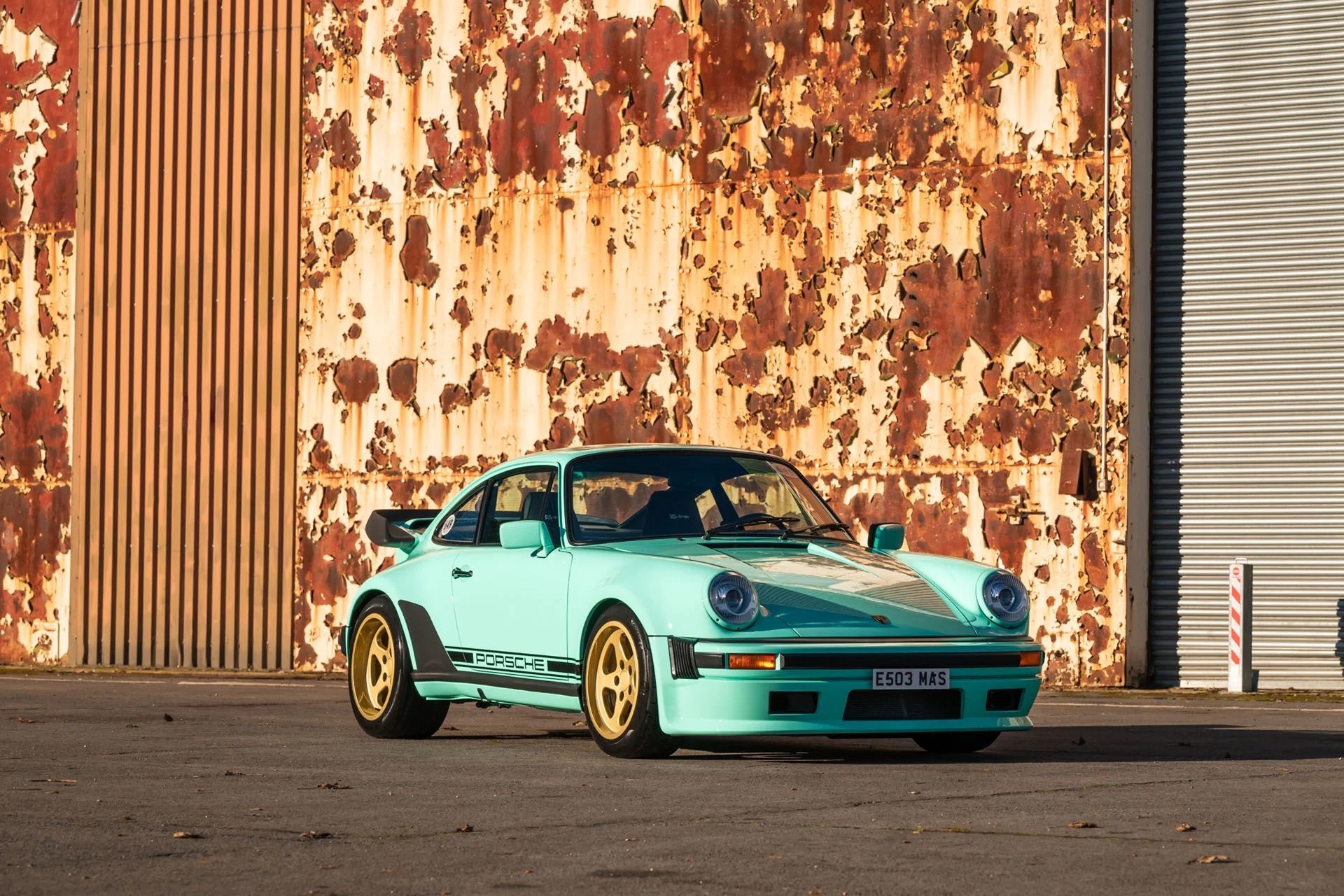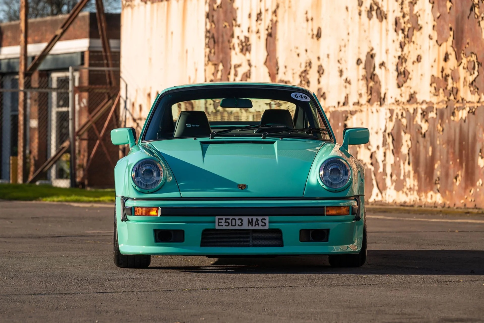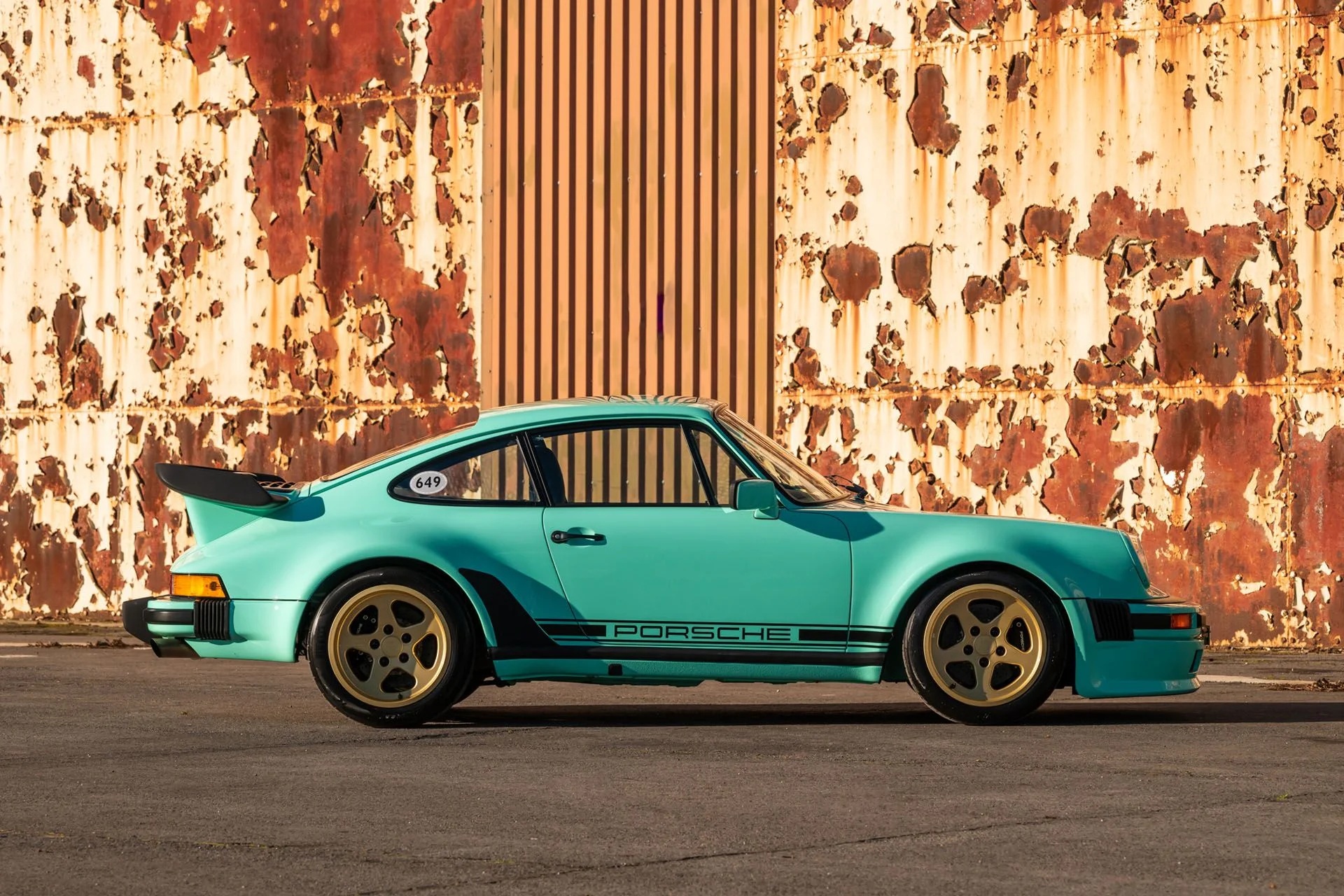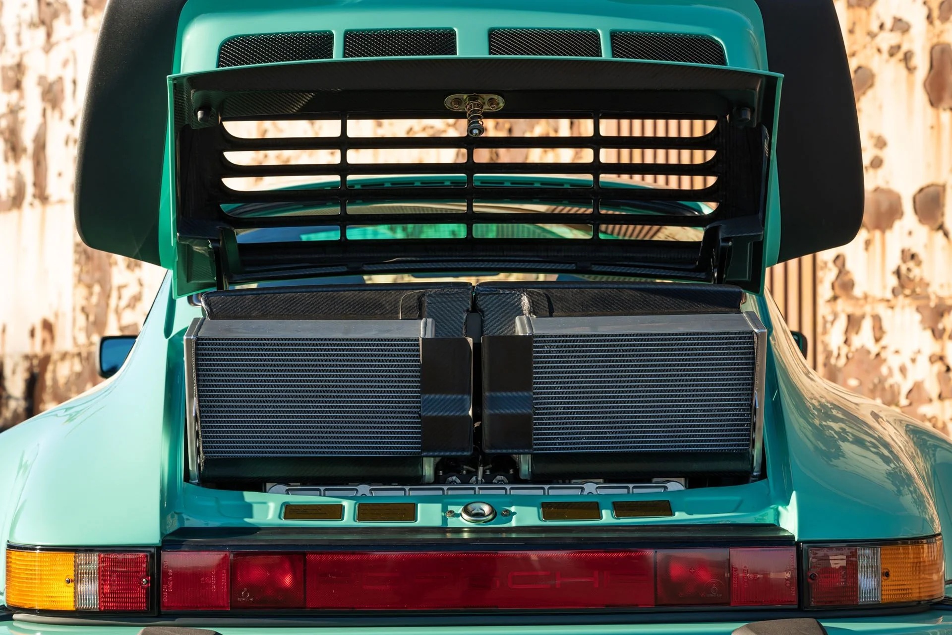 Features include 17-inch aluminum wheels from RUF, a lightweight climate control system, Porsche Classic Communication Management (PCCM) with satellite navigation, and bespoke instrumentation tailored for the TAG Turbo powertrain. It is equipped with a six-speed manual transmission featuring custom gear ratios, a twin-plate hydraulic carbon clutch, and an Inconel exhaust system with titanium tailpipes.