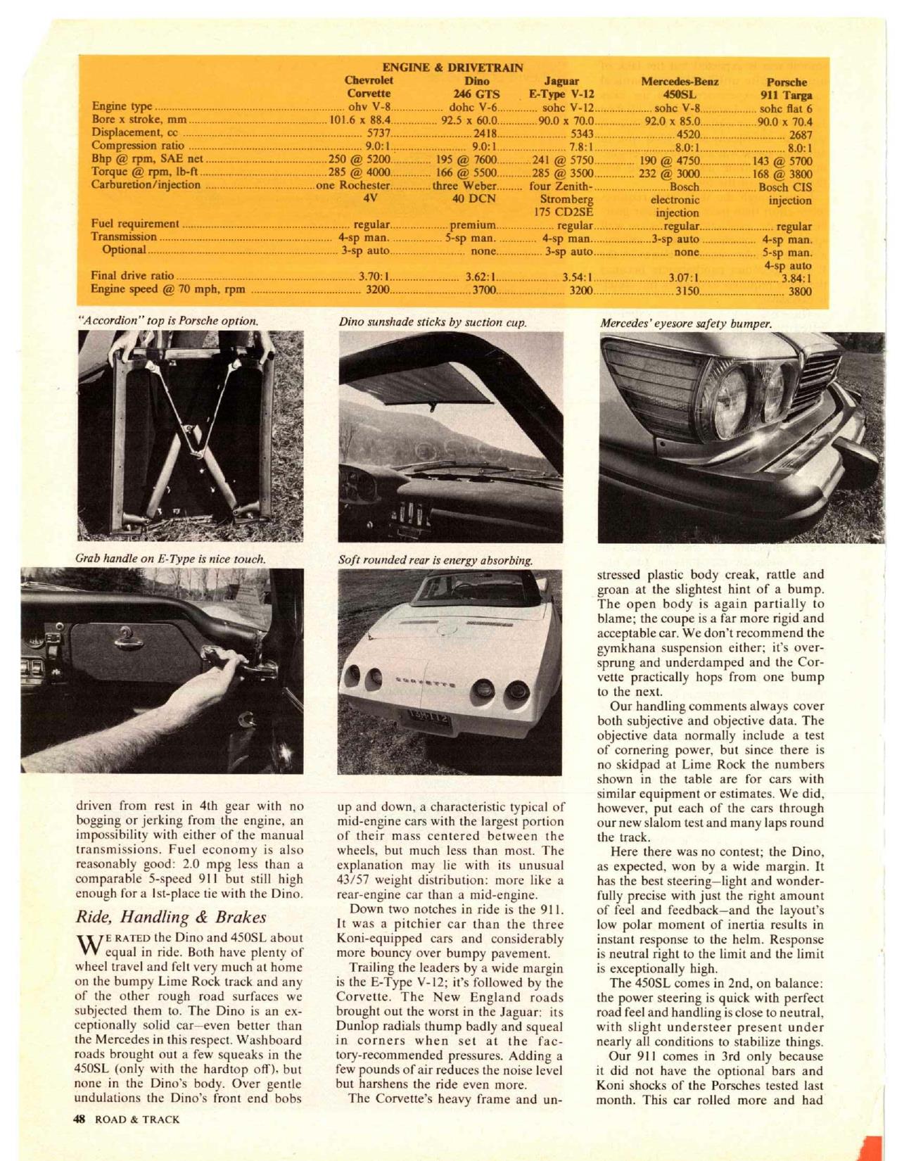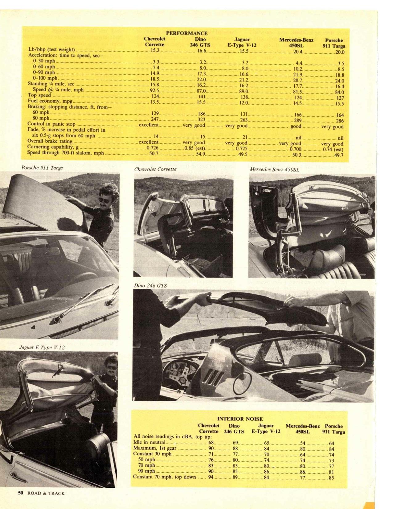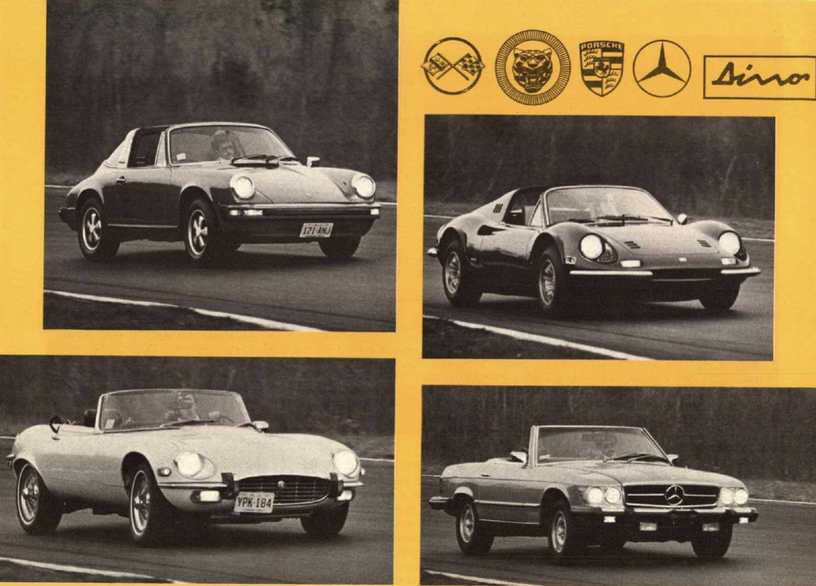 Porsche 911 Targa vs Ferrari Dino 246 GTS vs Chevrolet Corvette vs Jaguar E-Type vs Mercedes 450SL