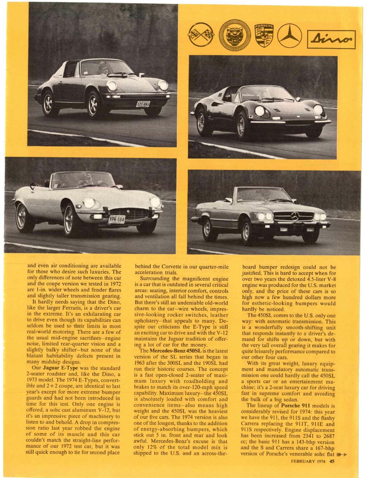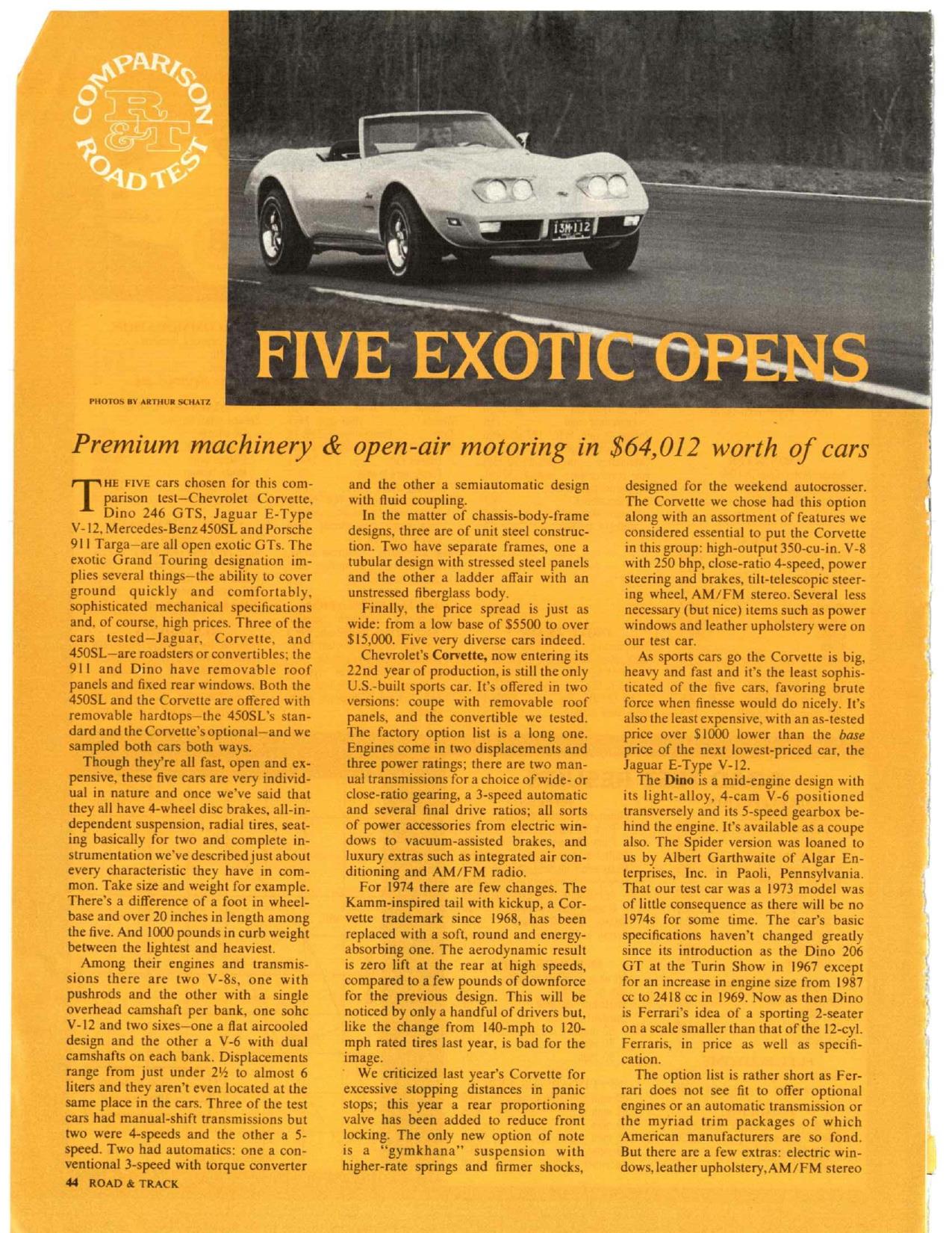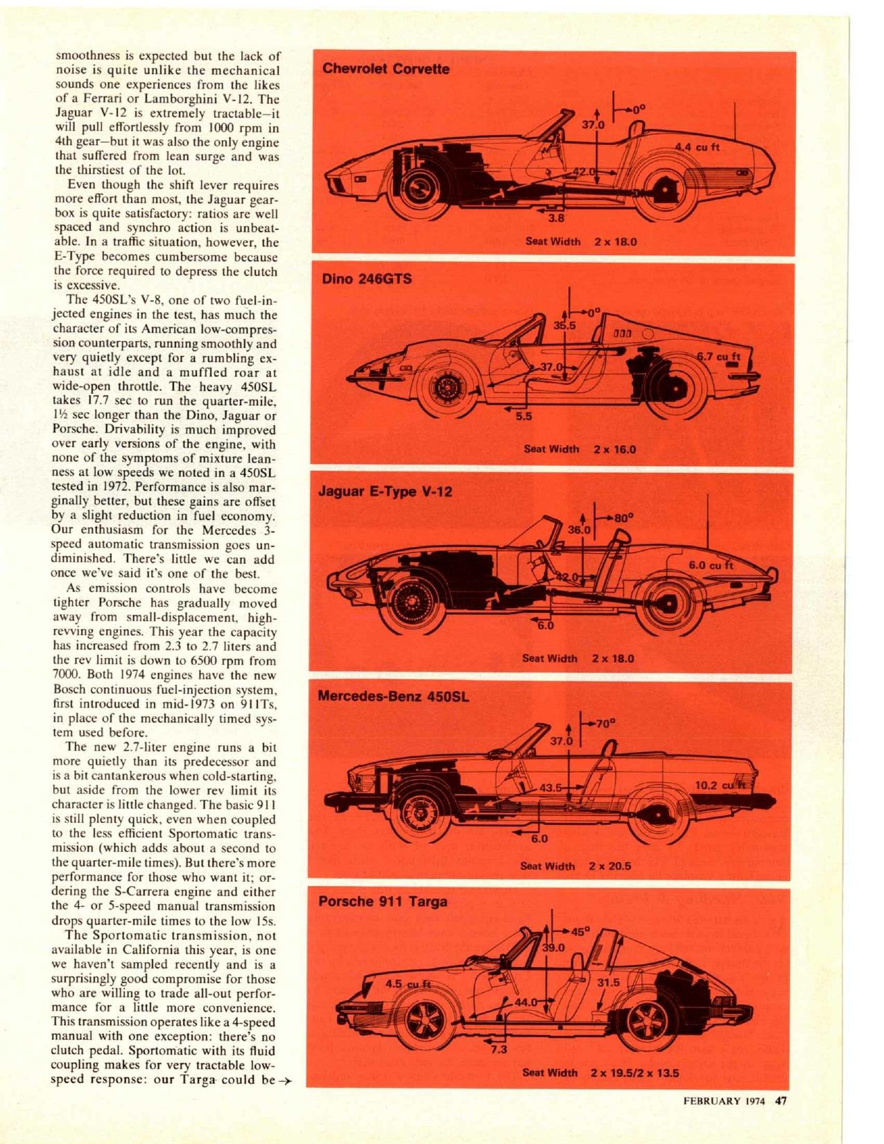 Porsche 911 Targa vs Ferrari Dino 246 GTS vs Chevrolet Corvette vs Jaguar E-Type vs Mercedes 450SL