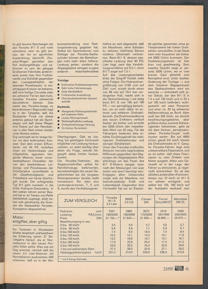 Porsche-911S 2.4 vs BMW 3.0SC vs Citroen SM vs Ferrari Dino 246GT vs Mercedes 350SL