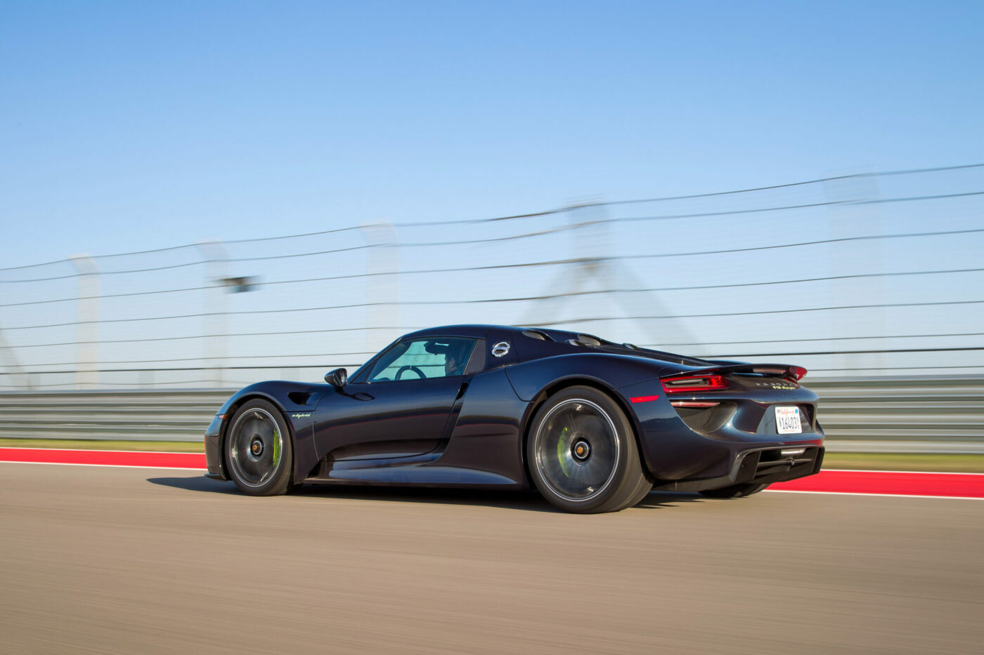 With styling cues from Porsche’s racing heritage – including top-exit exhaust pipes that improve the efficiency of heat dispersion from the mid-mounted 4.6-litre V8 (and that this writer thinks are one of the best car design elements to appear this side of the turn of the century) – and designed around aerodynamic efficiency and a carbon fibre monocoque chassis, which helps lower the centre of gravity and improve the overall rigidity of the car, the 918 has still somehow managed to emerge with a shape that is distinctly Porsche. ooking for some wind in your hair? Look no further. The 918’s party piece (well, one of them) is the lift-out roof panel hinted in its name, giving driver and passenger access to miles and miles of sky.