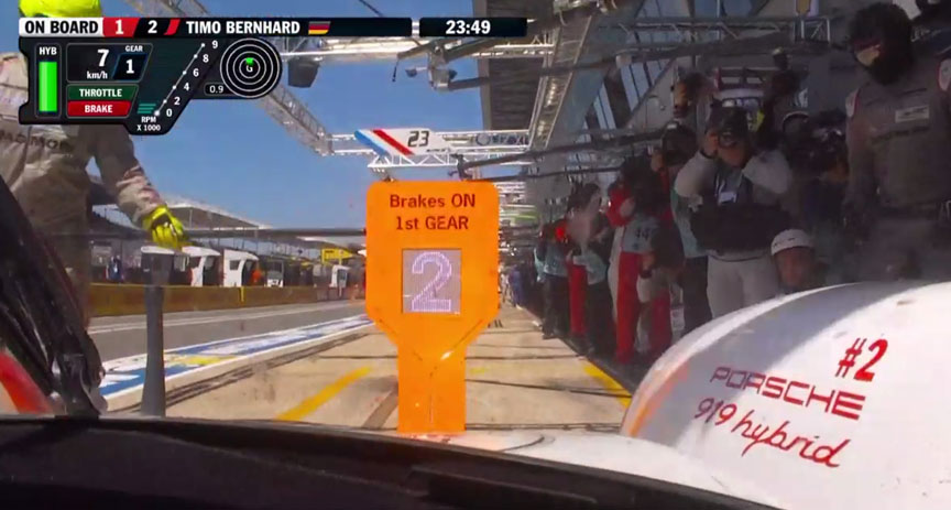 With more than 7 hours into the race, Toyota #8 driver Sébastien Buemi told over the radio to the team that he hears bad noises from the front electric drive system. The team told him that they don’t see anything wrong over the telemetry and he is not allowed to come to the pits before the scheduled pit time. Buemi continued on the second place (a Toyota 1-2 lead) until the MGU failed in his car like it did in the Porsche #2. Toyota #8 came in and promoted the Porsche #1 to second position, now between Toyota #7 and Toyota #9.