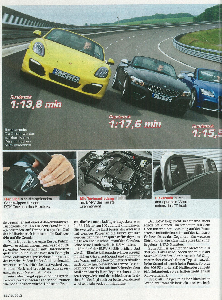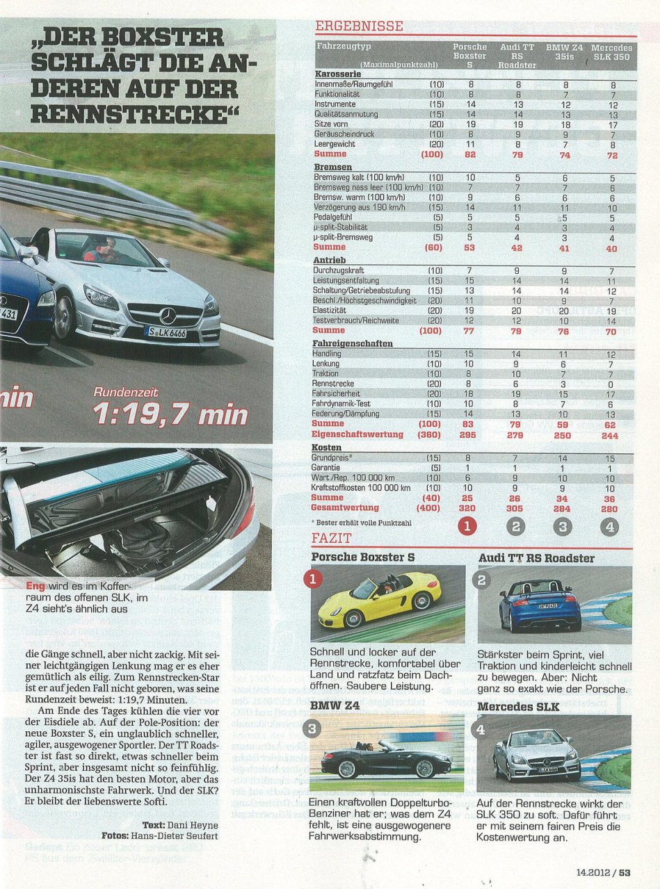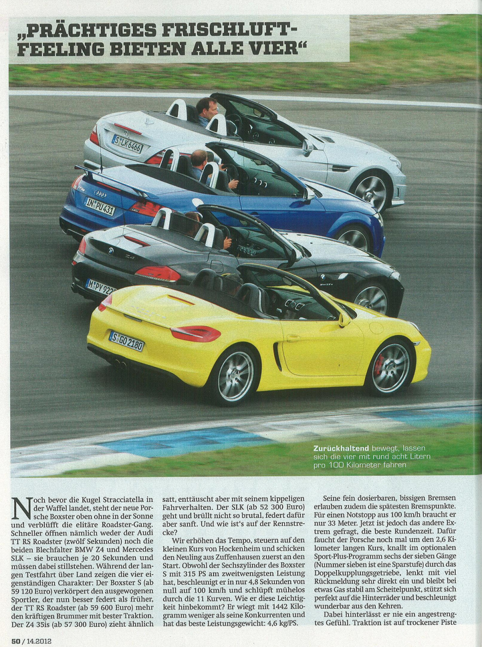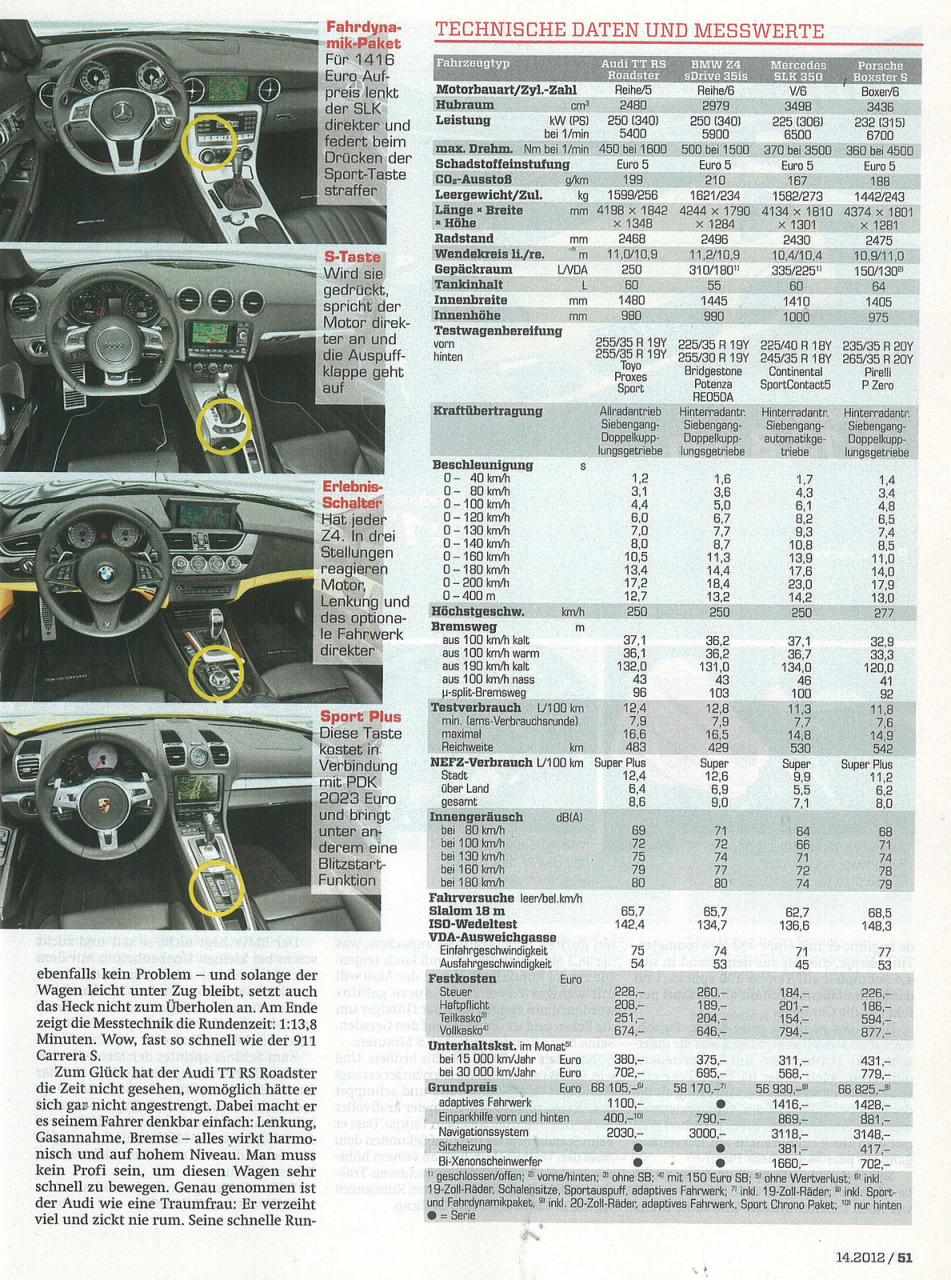 Porsche 981 Boxster S vs Audi TT RS vs BMW Z4 vs Mercedes SLK 350