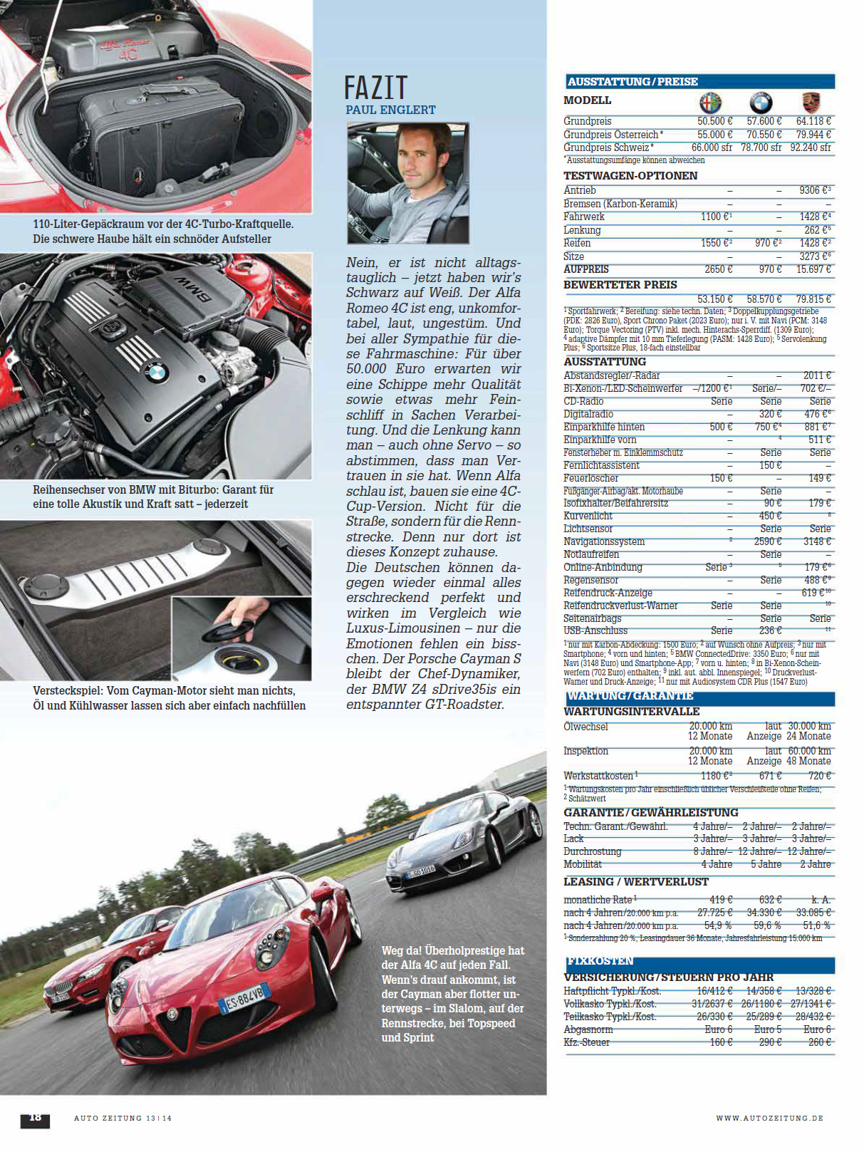 Porsche 981 Cayman S vs Alfa-Romeo 4C vs BMW Z4