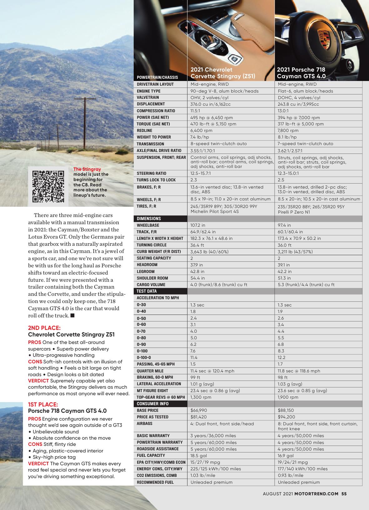 Porsche 982 Cayman GTS 4.0 vs Corvette C8