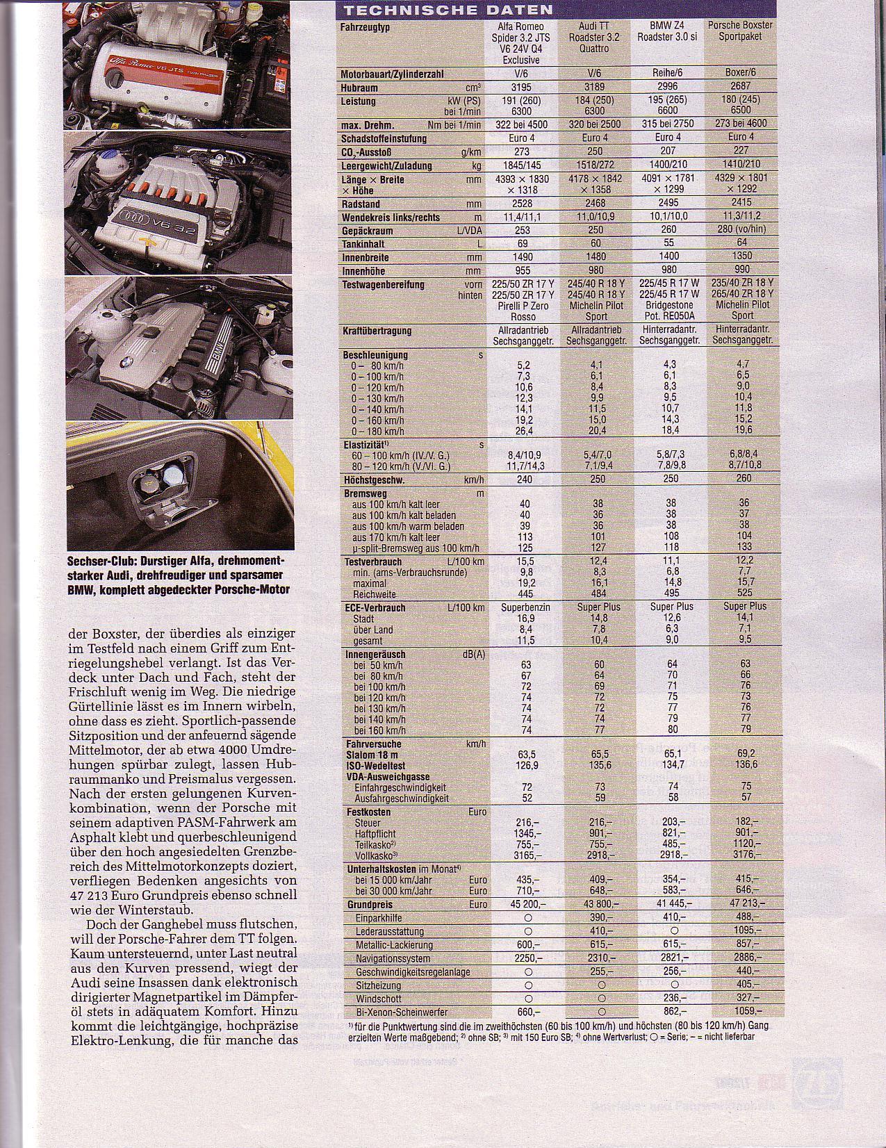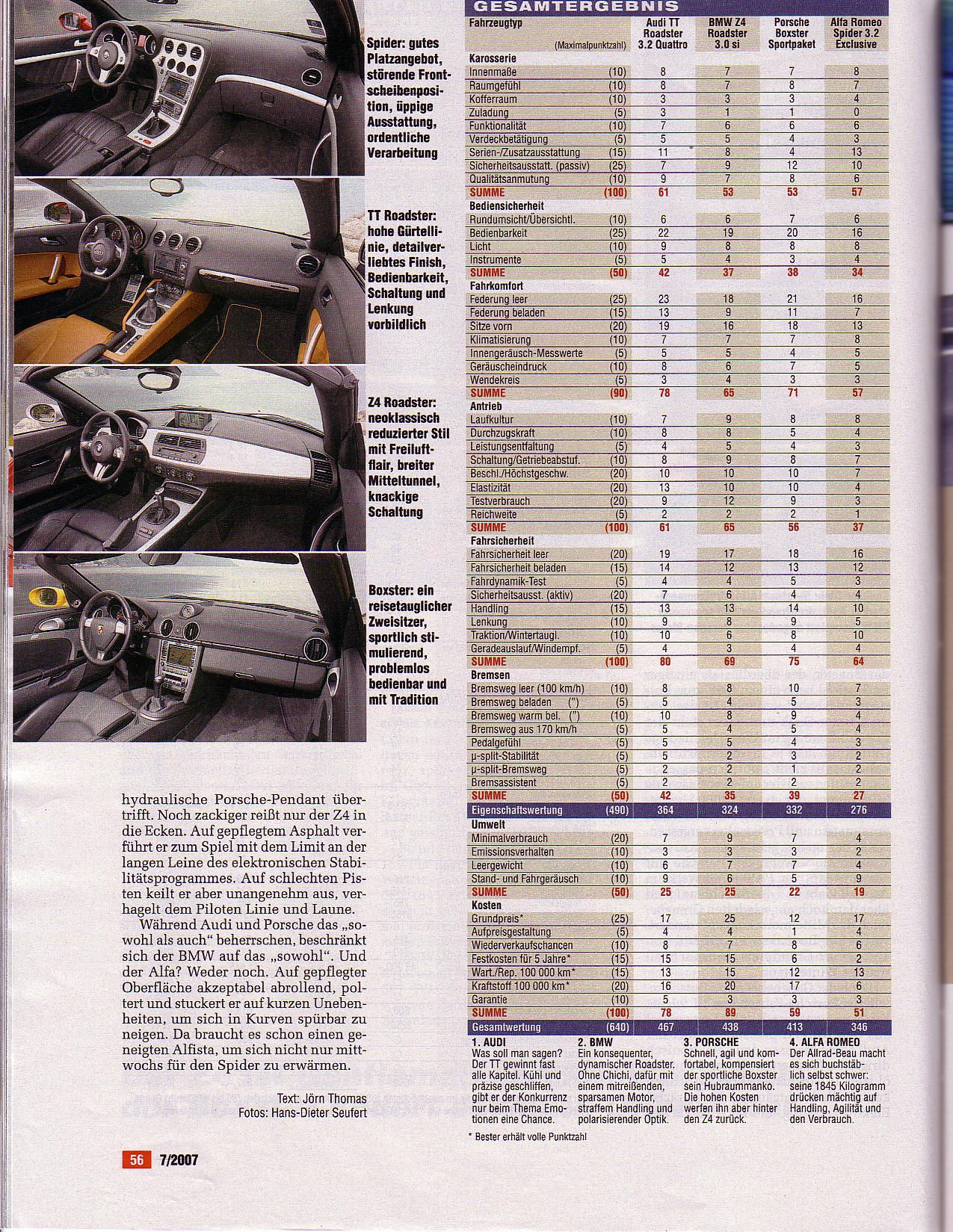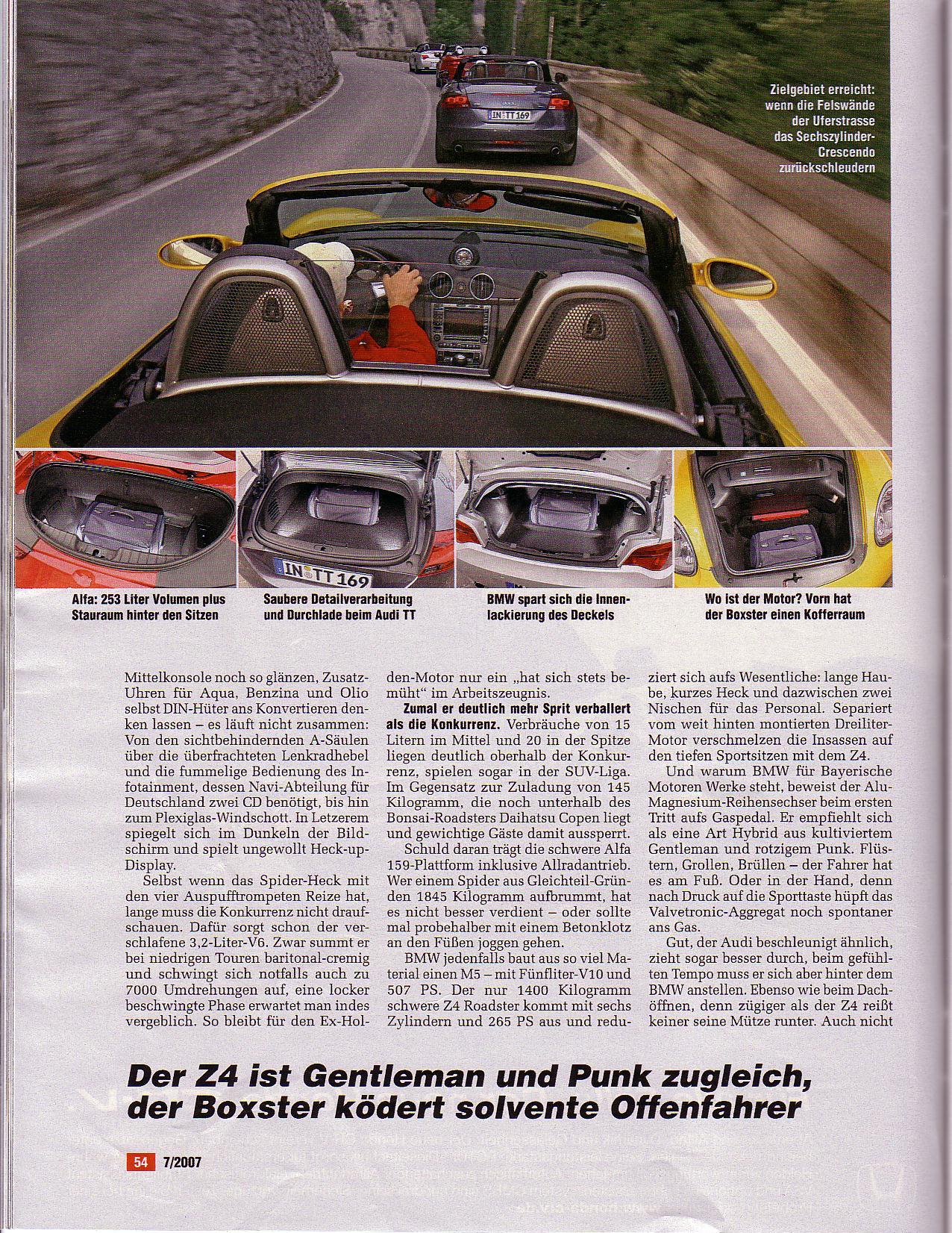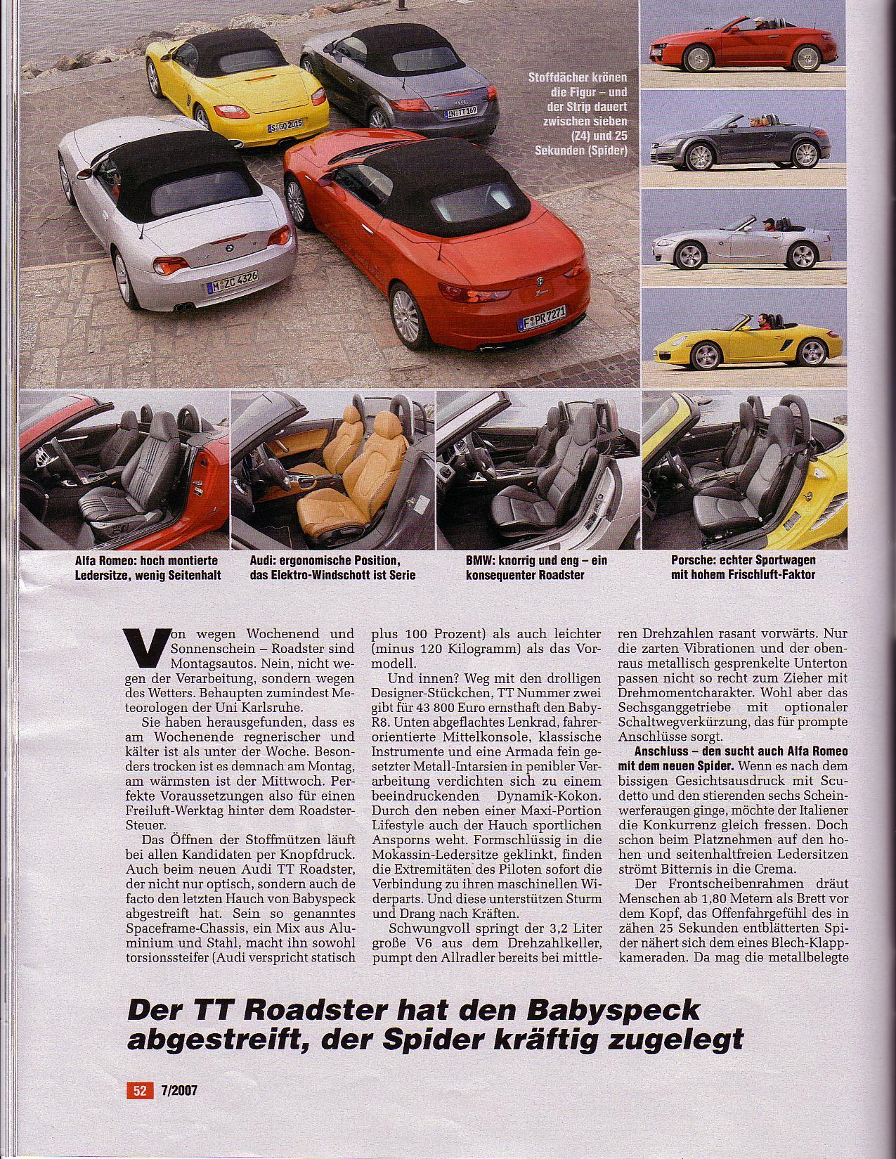 Porsche 987 Boxster S vs Alfa-Romeo Spider vs Audi TT Roadster vs BMW Z4 Roadster