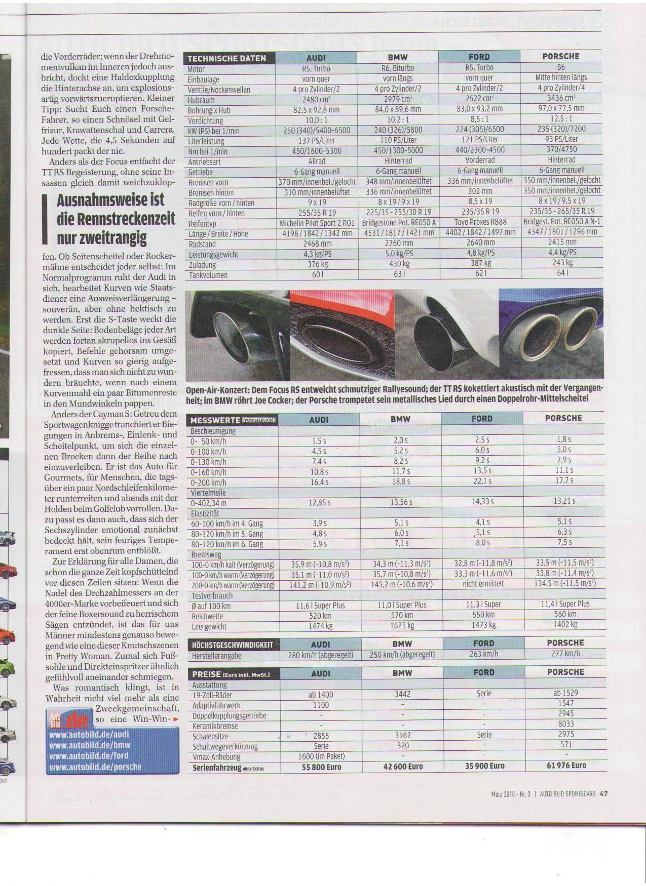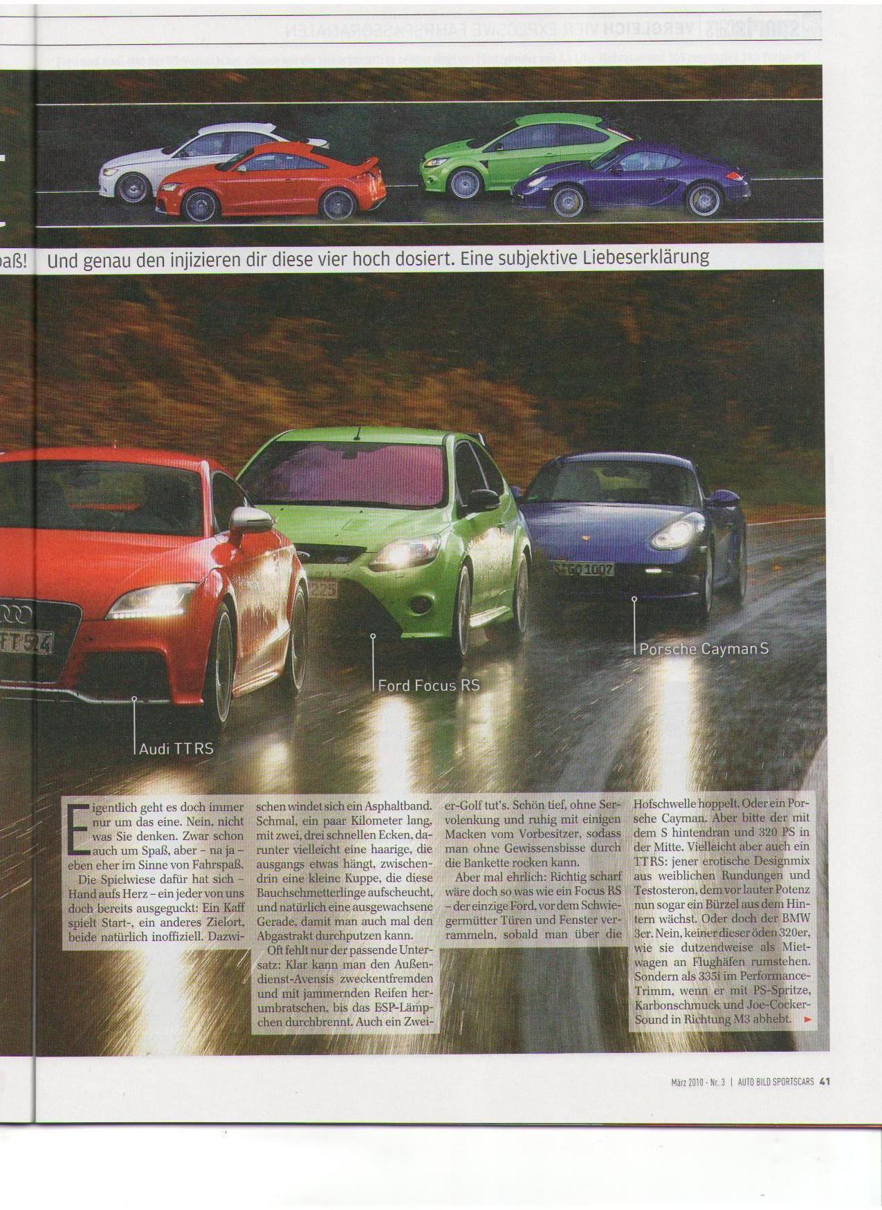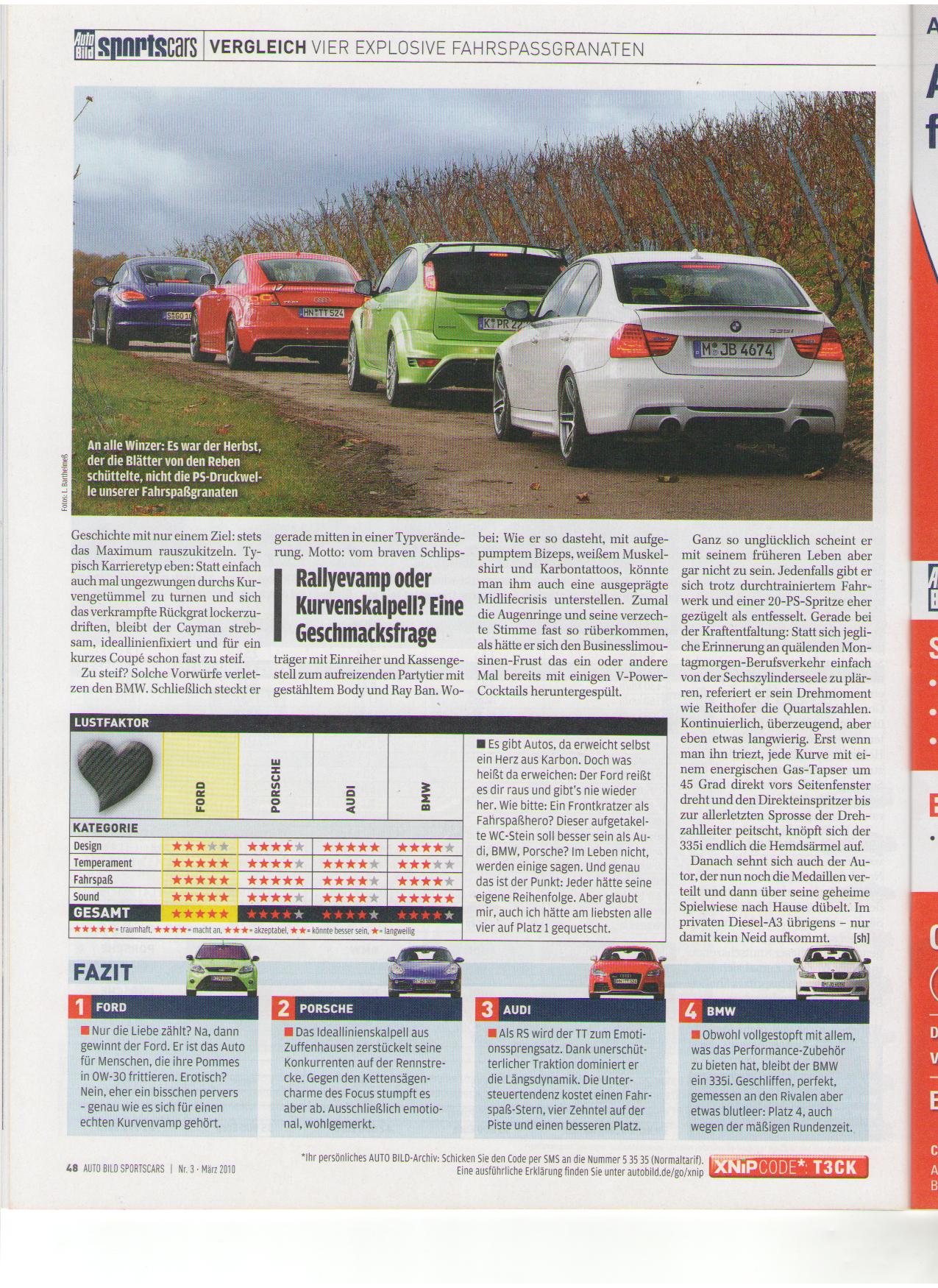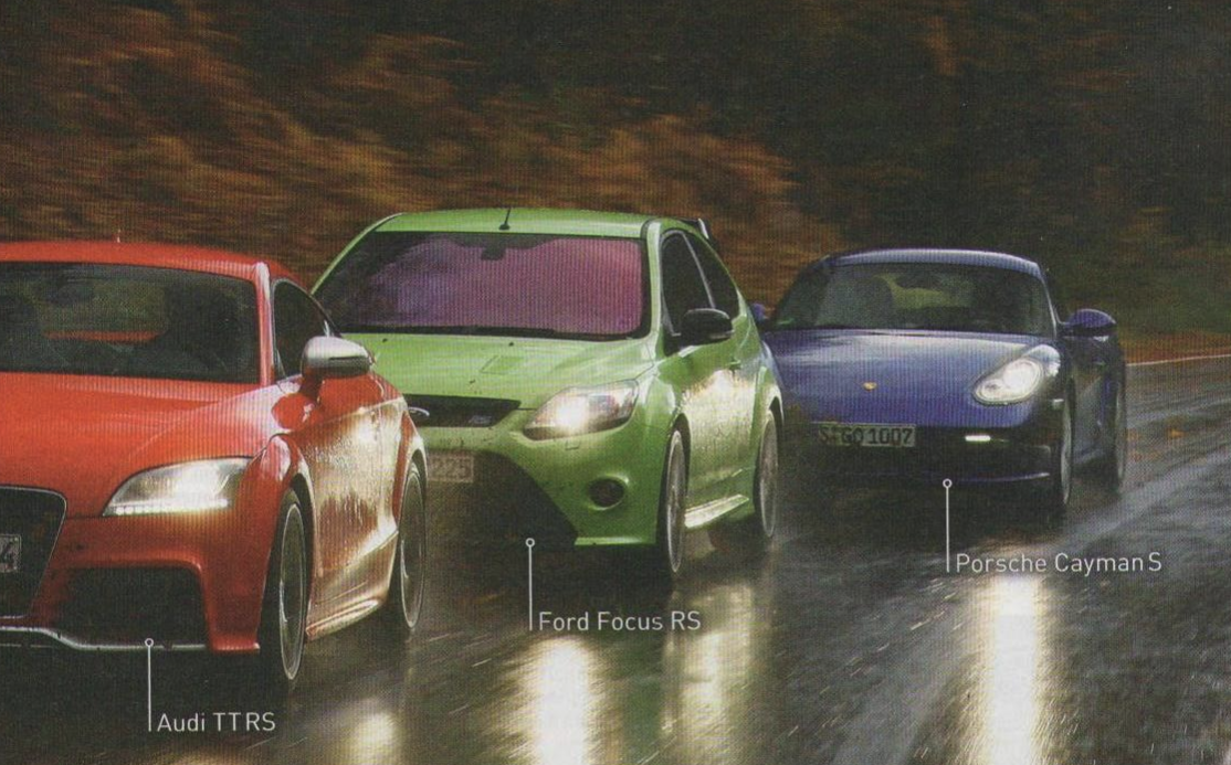Porsche 987 Cayman S vs BMW 335 vs Audi TTRS vs Ford Focus RS