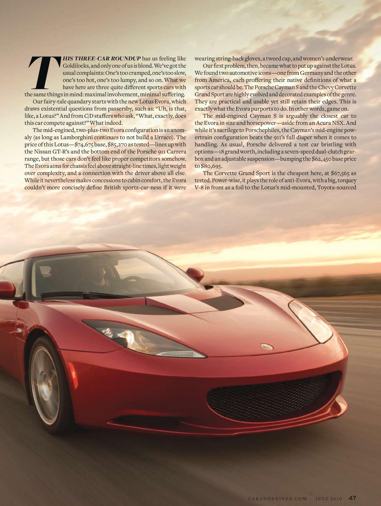 Porsche 987 Cayman S vs Lotus Evora vs Chevrolet Corvette GS