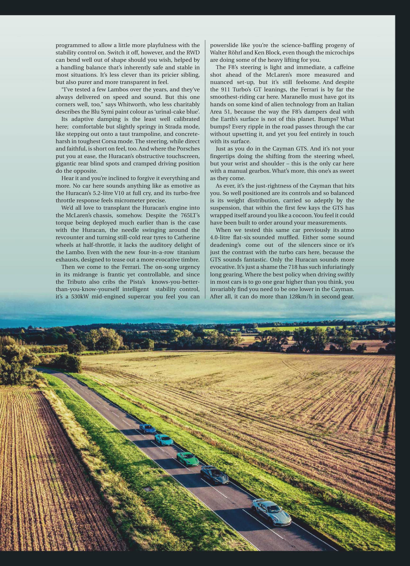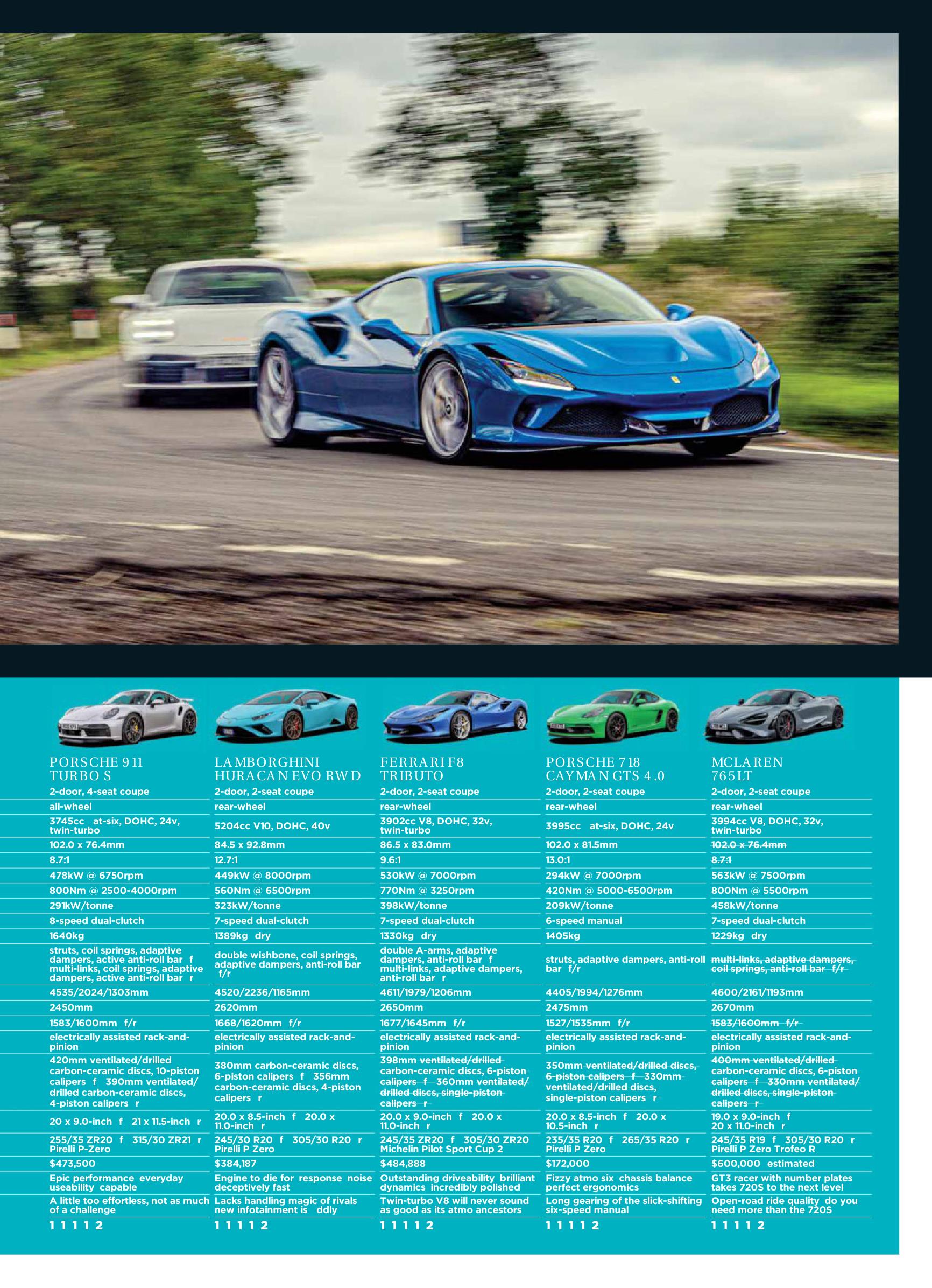 Porsche 992 Turbo S & 982 Cayman GTS 4.0 vs Ferrari F8 vs McLaren 765LT vs Lambo Huracan Evo