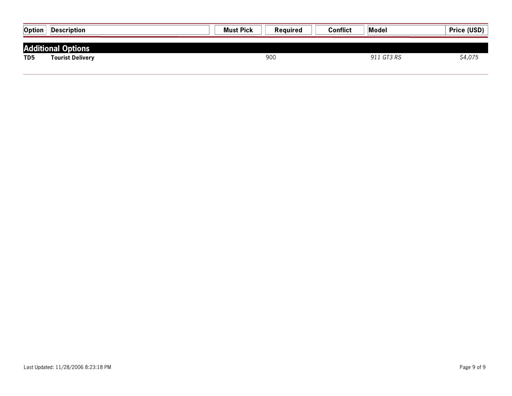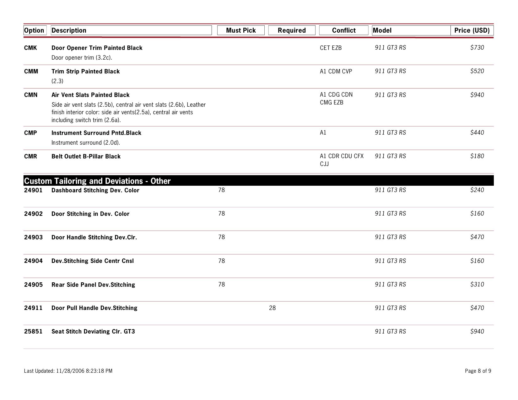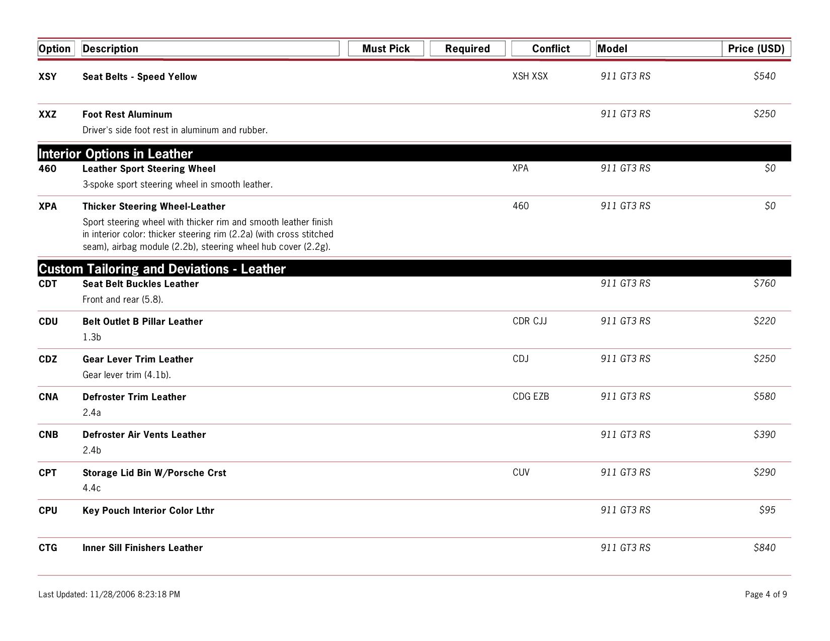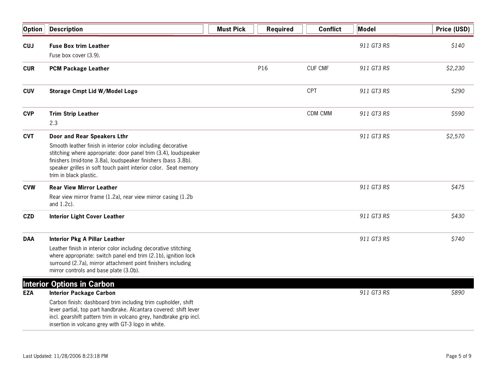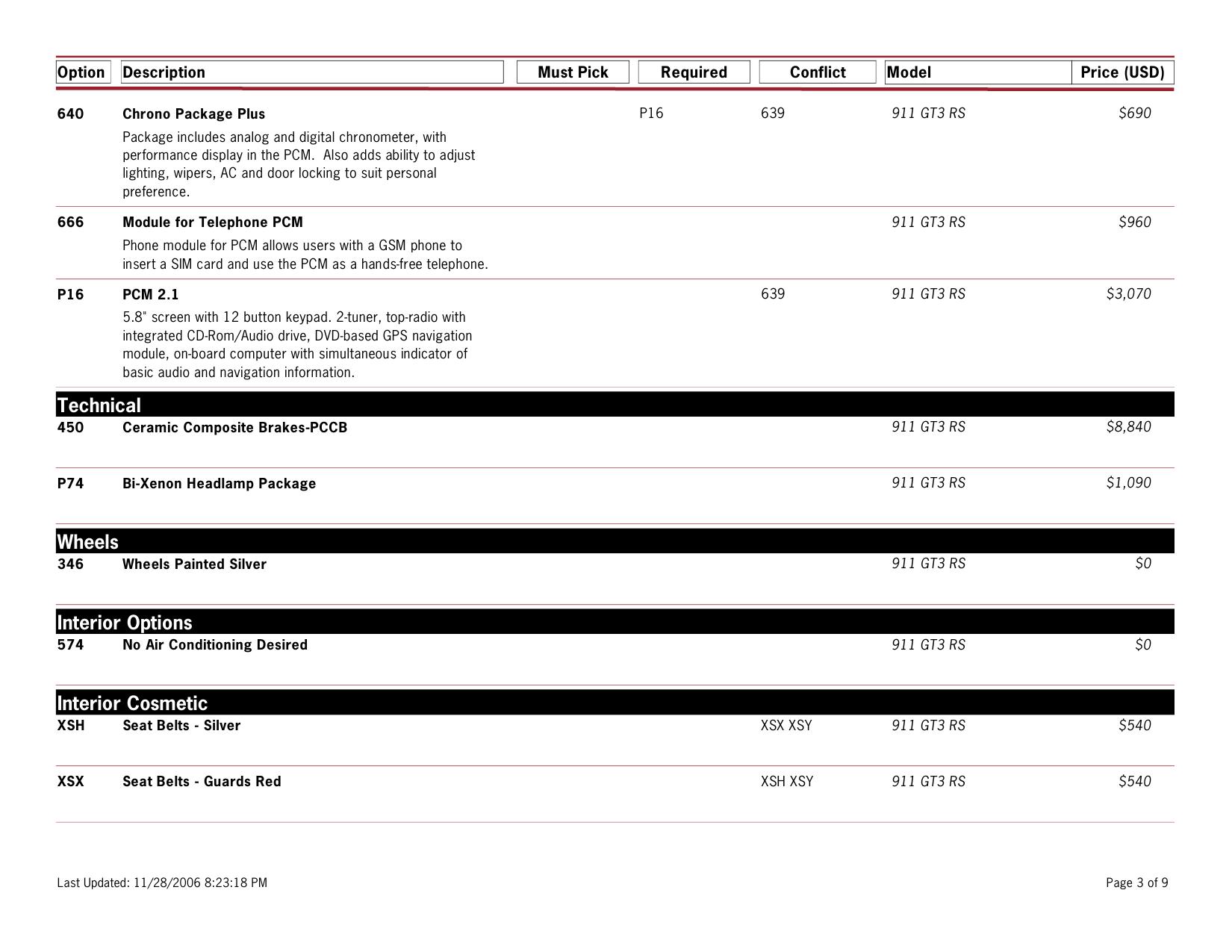 Porsche 997 GT3 RS Mk I, US Market, 2007MY: Order Guide