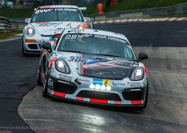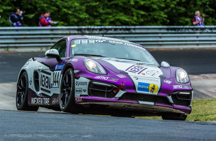 Cayman #144 of Adrenalin Motorsport exits the famous Karussell en route to its Class V 5 win. Its team Cayman #143 claimed third in class, one lap behind the lead. The pair returns for the 2019 race as well.
