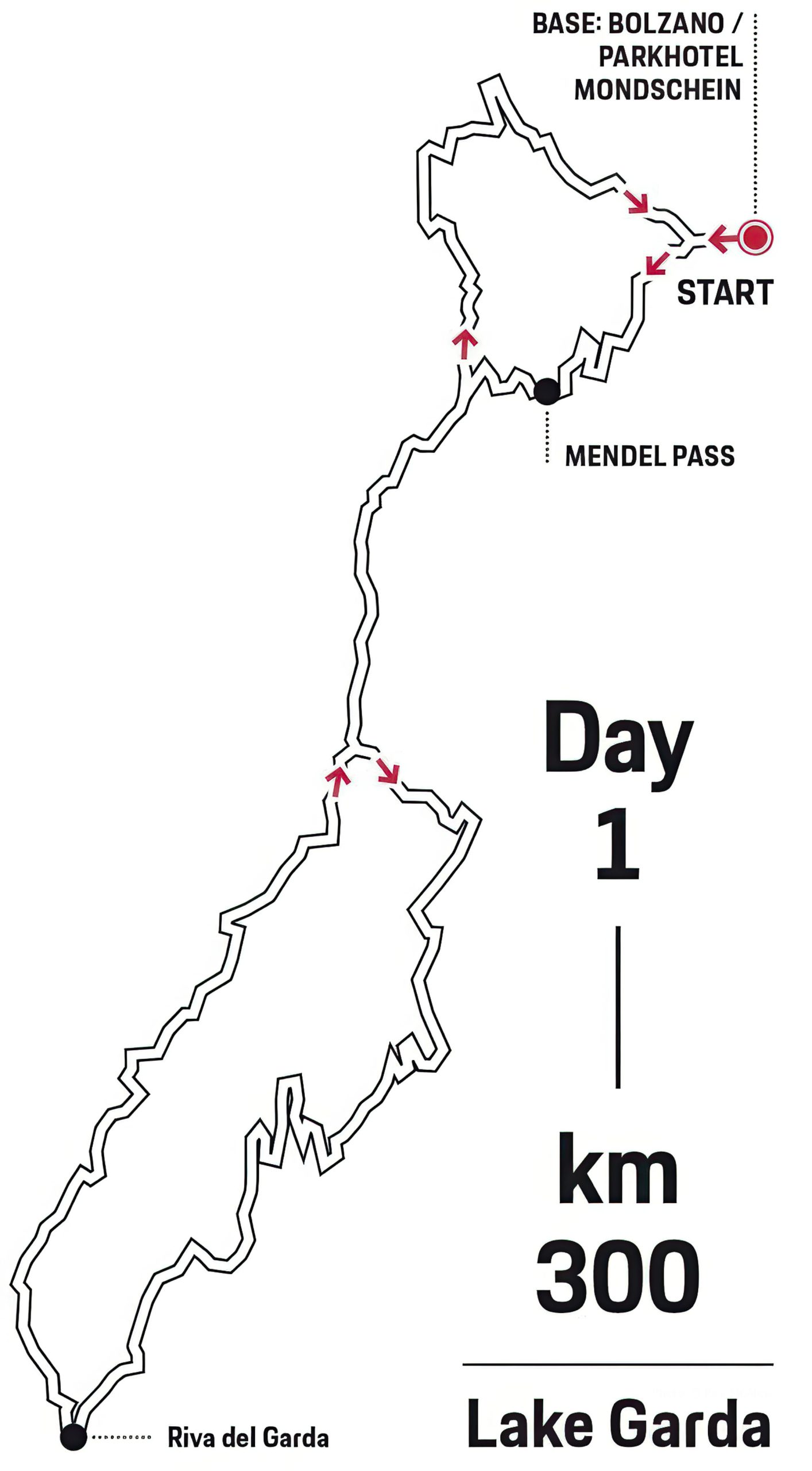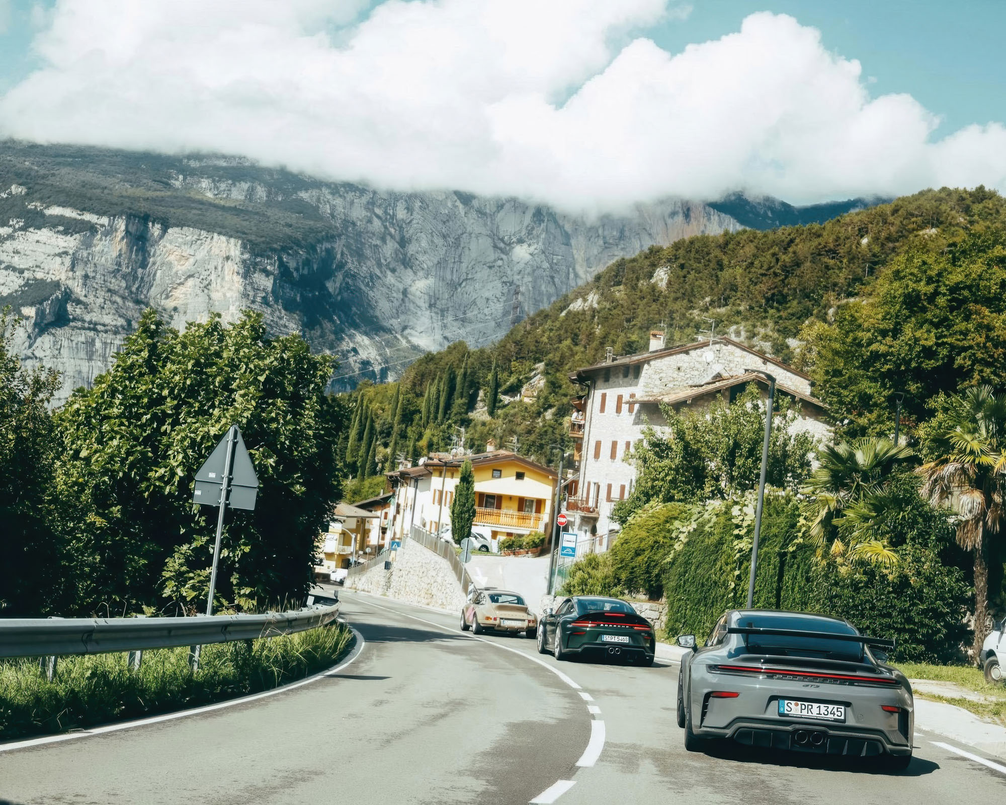Almost 300 kilometers, seven and a half hours of pure driving pleasure – Day 1 of the road trip leads from Bolzano to Lake Garda. After a gentle 30 minutes through countless Traminer vineyards, the route begins to climb noticeably and the fun of the curves begins. Soon, the first geographical highlight awaits: the Mendel Pass. From there, the route descends to Trento before climbing steeply once again: with each of the roughly 2,000 meters of elevation, the heart rate rises, the zigzags of the countless bends forming a matching ECG.