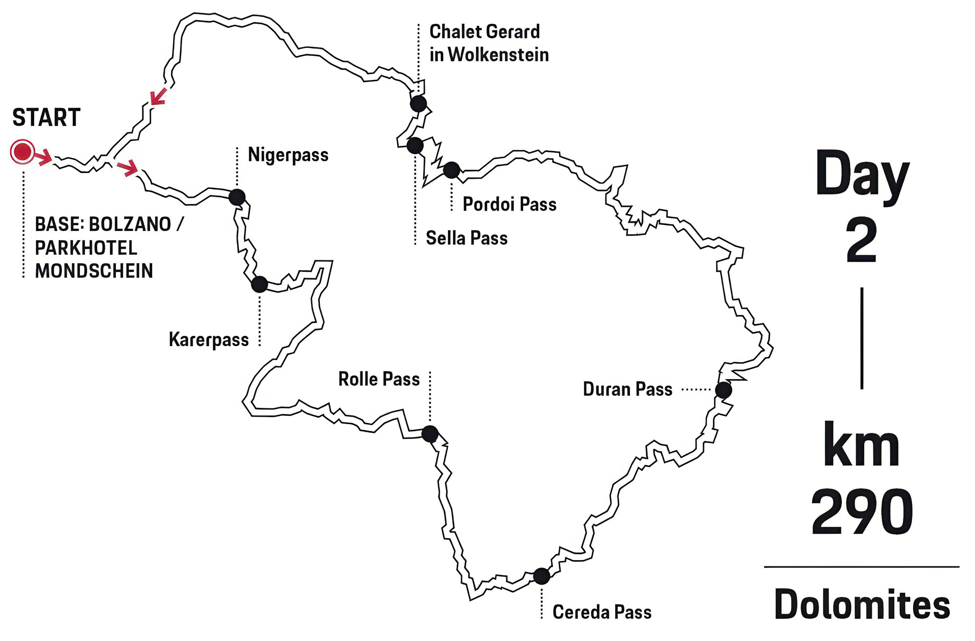 For a late lunch – or early dinner – Chalet Gerard above Wolkenstein awaits. Here, heaven and earth meet, a delight for all the senses. In the afternoon, the return journey leads from the cooler heights back to warm Bolzano. Back at the hotel, the adrenaline is still palpable – as is the anticipation of the next day.